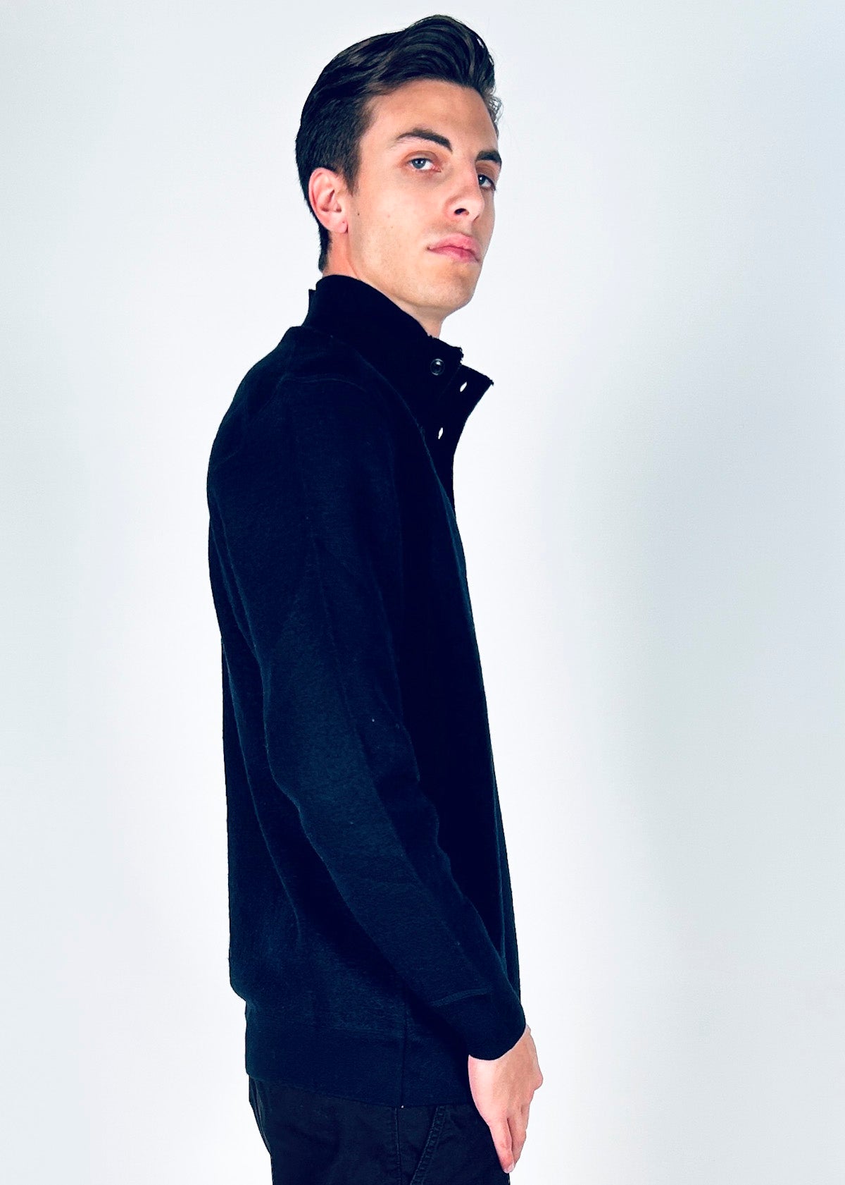 MAGLIONE UOMO IN LANA MERINO INFELTRITA CON MEZZA CHIUSURA A BOTTONI BLU