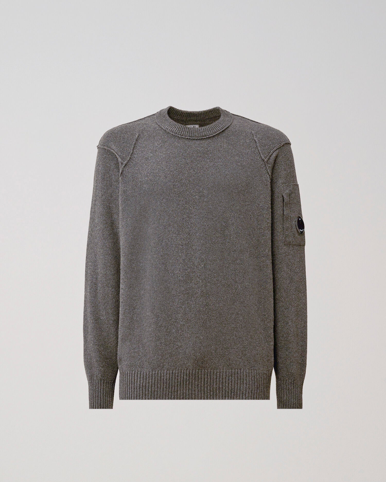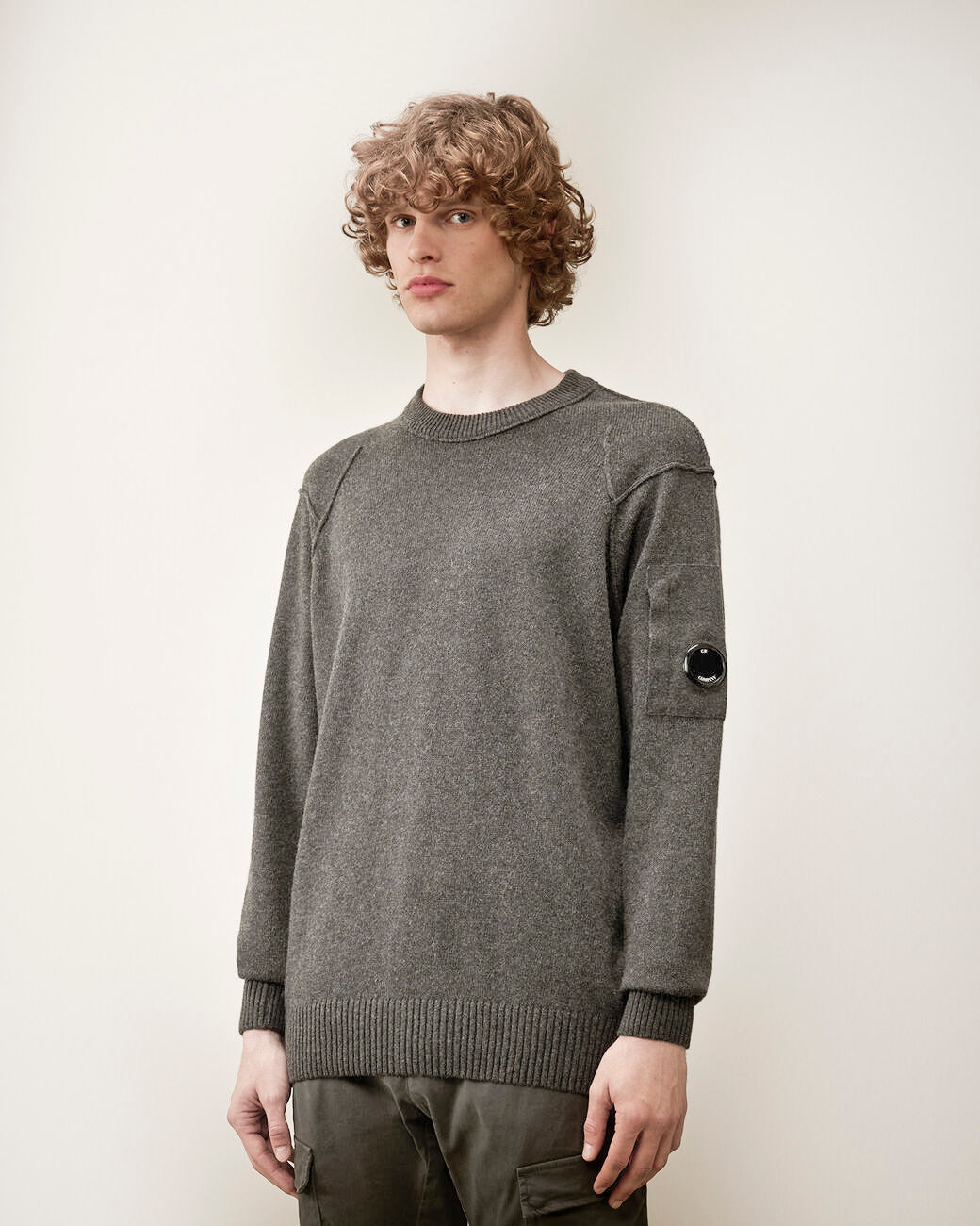 Maglione girocollo in Lambswool GRS, con taschino e Lente iconica di C.P. Company, cuciture a contrasto e polsini e orlo a costine. Finezza 7 e vestibilità regular. Disponibile dalla S alla XL.