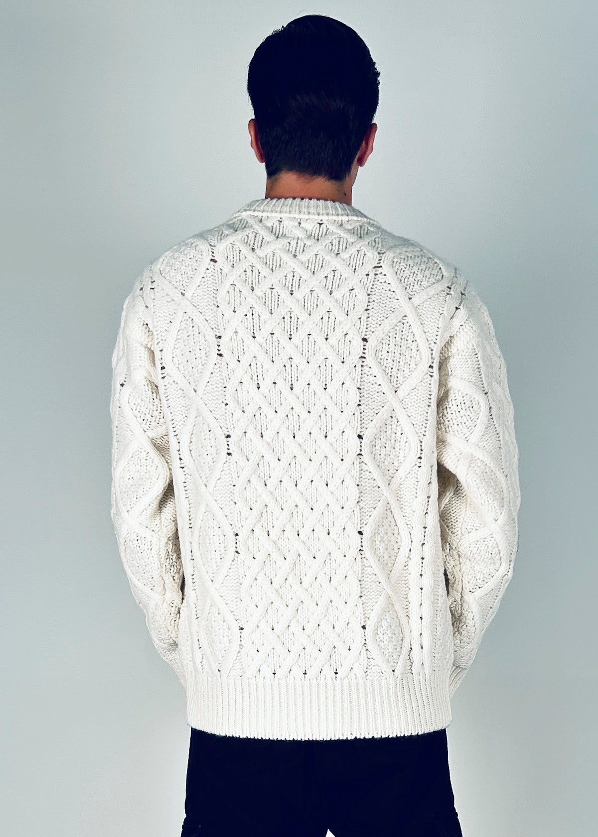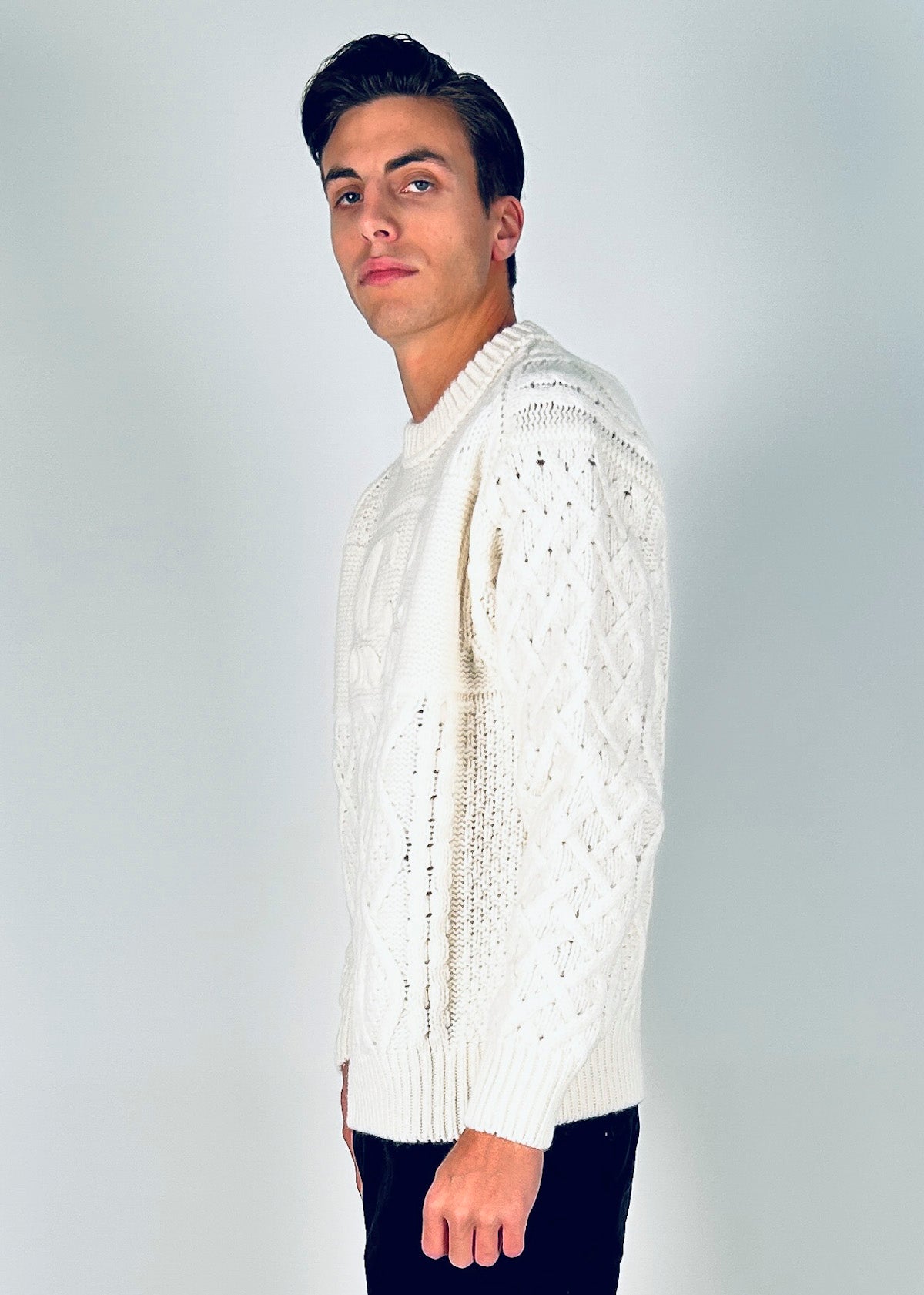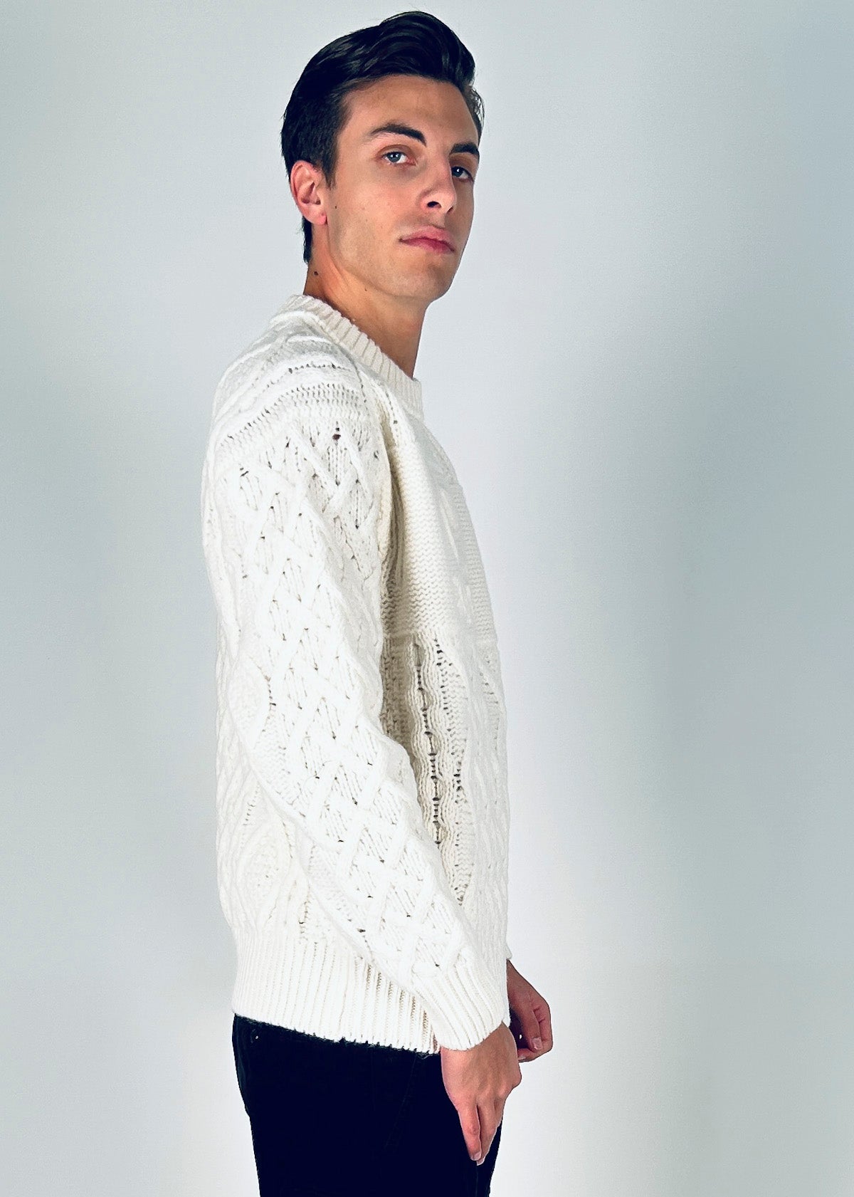 MAGLIONE UOMO GIROCOLLO IN MORBIDA LANA SHETLAND BIANCO