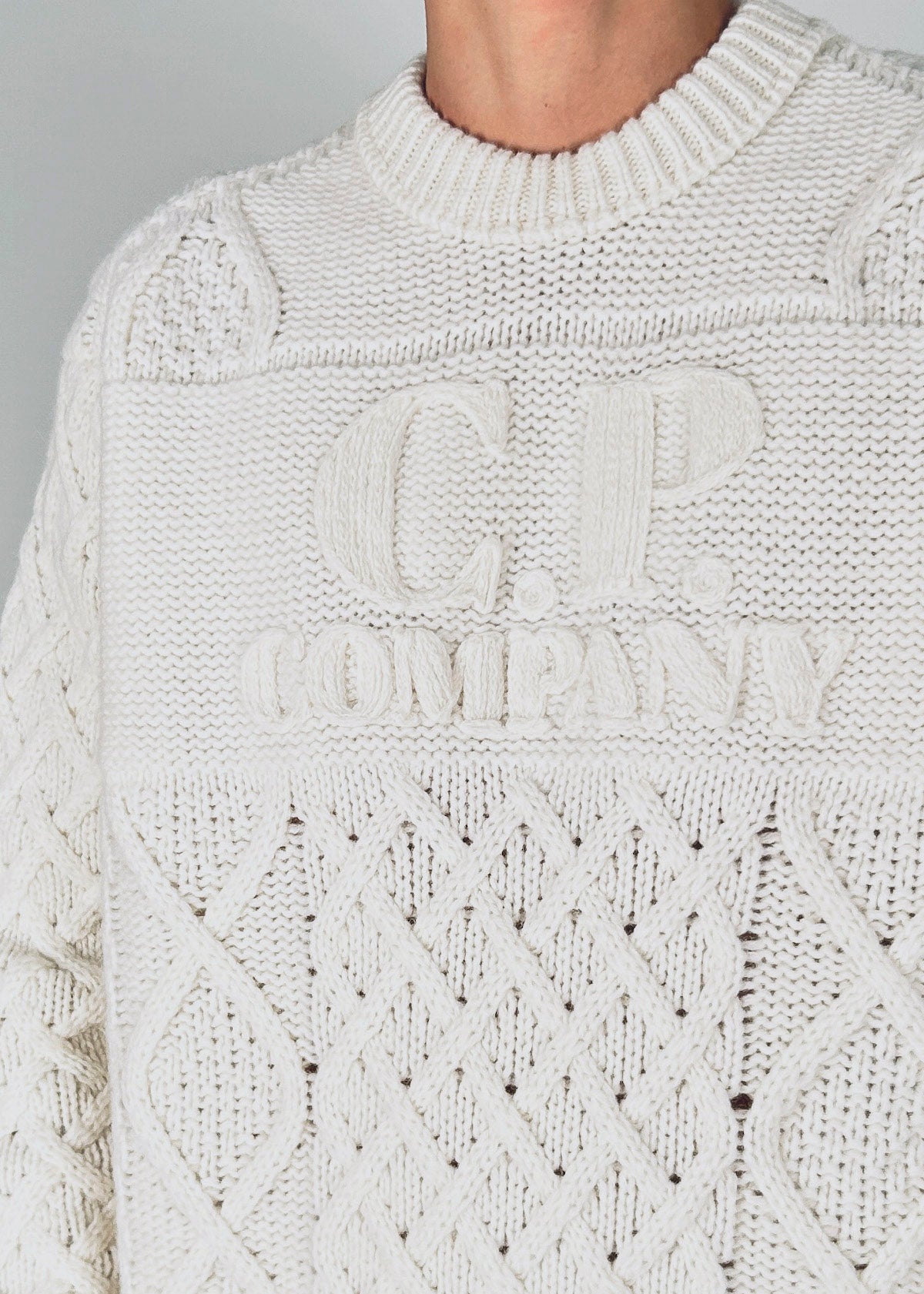 Maglione girocollo in lana Shetland con logo ricamato sul fronte, polsini e orlo a costine. Finezza 3, vestibilità regular. Disponibile dalla S alla XL. Il modello è alto 1.86m ed indossa la taglia M. Made in Moldavia.