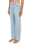 Jeans relaxed-fit in denim blu non stretch, a gamba ampia e lunghezza intera, lavaggio medio con rotture e rammendi, chiusura con bottone personalizzato e zip, passanti per cintura, etichetta logo e design classico a 5 tasche. Disponibile dalla 30 alla 38.