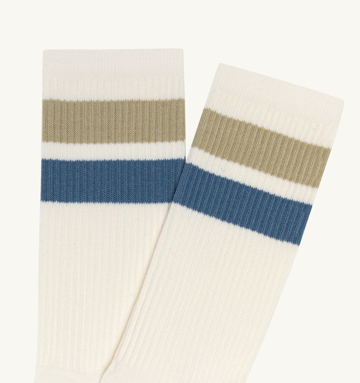 CALZINI JACQUARD CON LOGO A RIGHE UNISEX PANNA/AZZURRO