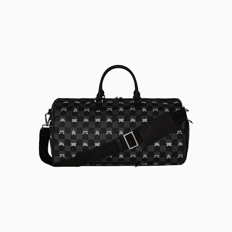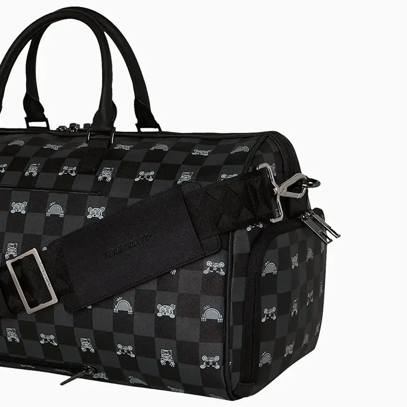 Sprayground Gray Peeking Character Check Borsone Unisex è una borsa da viaggio streetwear dal design iconico, caratterizzata dal motivo a scacchi grigio e nero e dalla celebre grafica Shark Mouth, simbolo distintivo del brand. Realizzato in PVC resistente con effetto pelle, offre un ampio scomparto principale con chiusura a zip e tasche interne ed esterne per una migliore organizzazione degli oggetti. Le dimensioni generose (50,8 × 25,4 × 27,3 cm) lo rendono ideale per weekend, palestra o come bagaglio a mano. Dotato di manici robusti e tracolla regolabile, garantisce comfort e praticità in ogni spostamento. Un borsone funzionale e riconoscibile, perfetto per chi cerca stile streetwear e massima capienza.