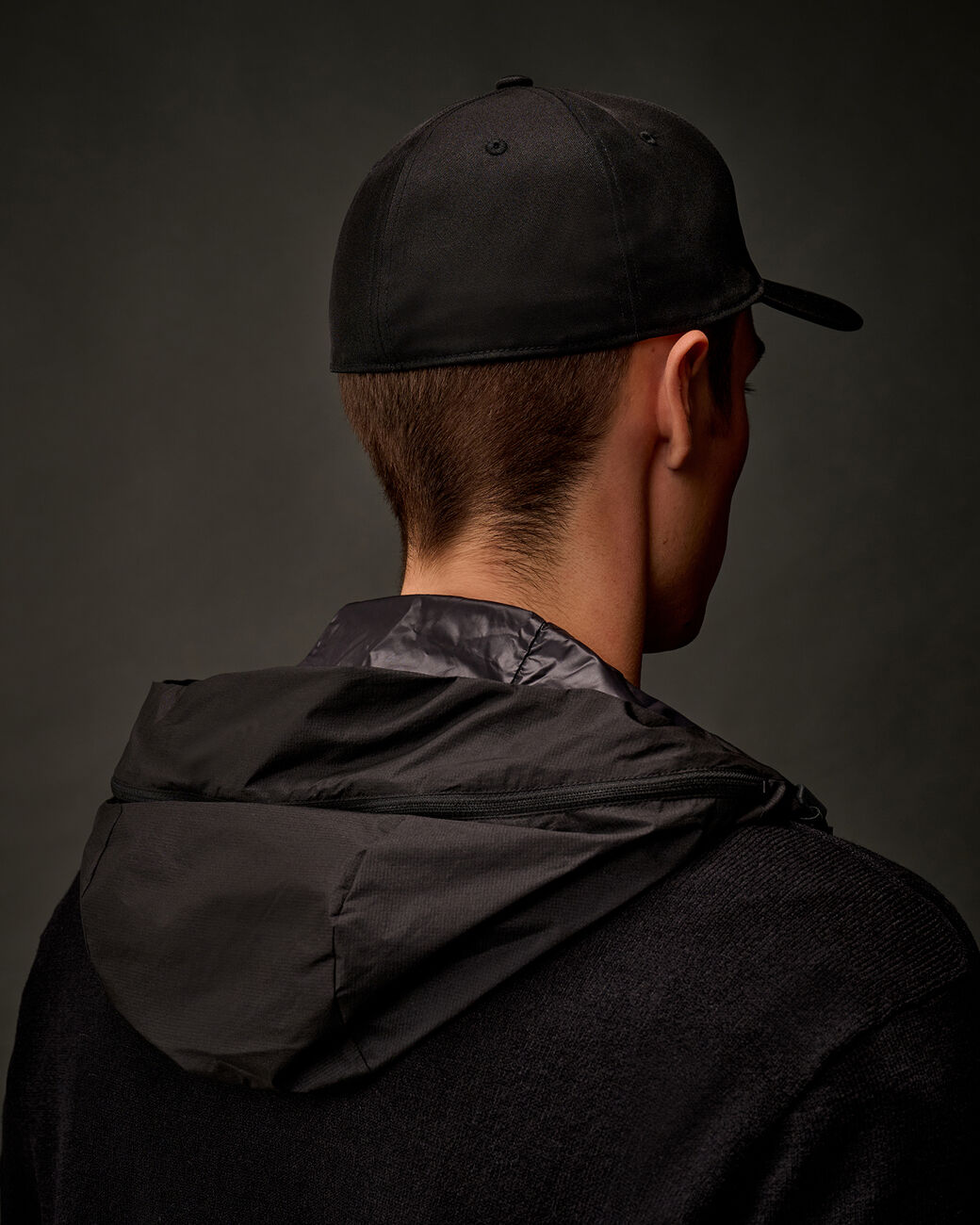 Cappello in twill di poliestere con visiera curva, occhielli cuciti e logo badge gommato sul fronte. Disponibile dalla M alla XL. Made in China.