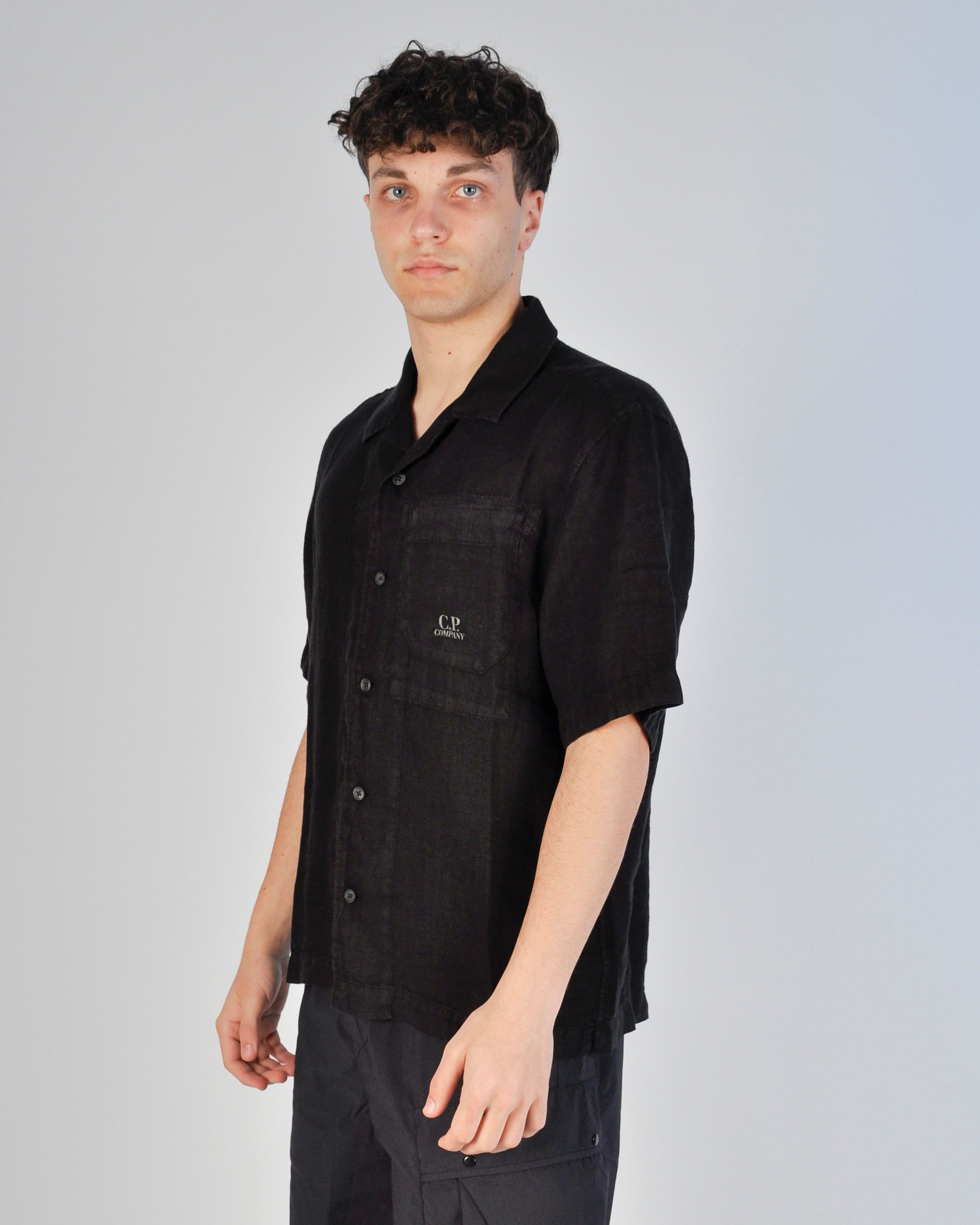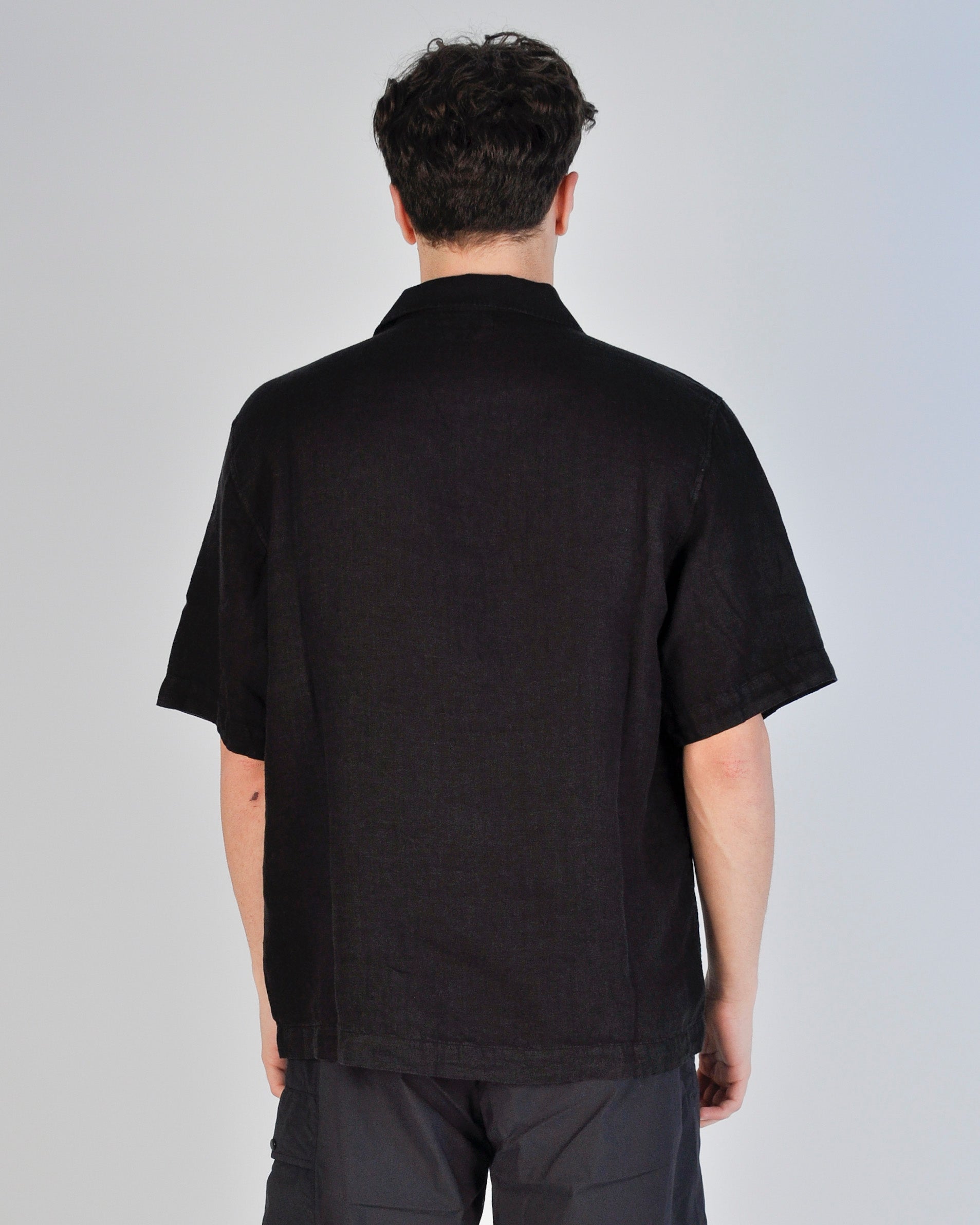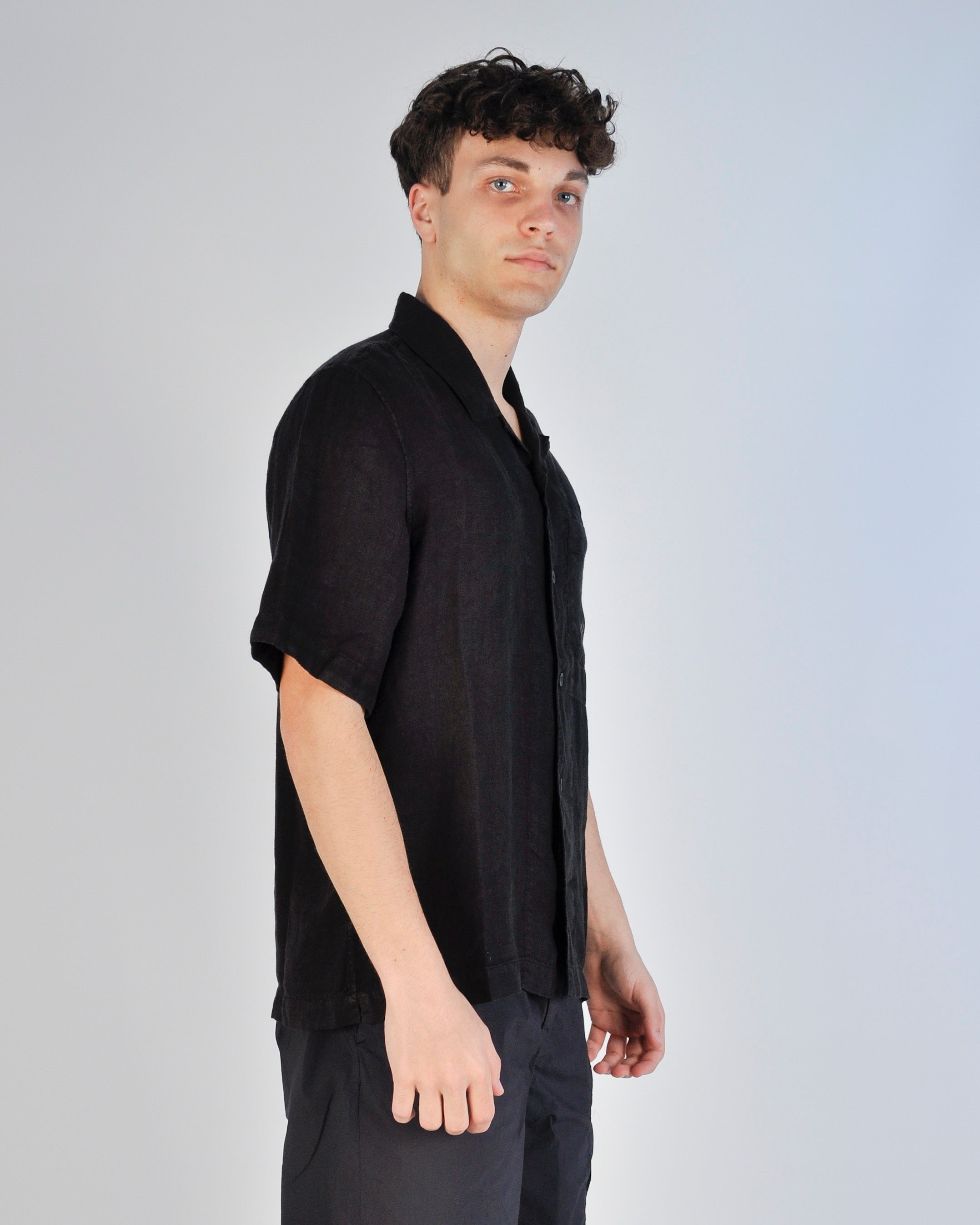 CAMICIA IN LINO MANICA CORTA, VESTIBILITA' AMPIA CON BOTTONI UOMO NERA