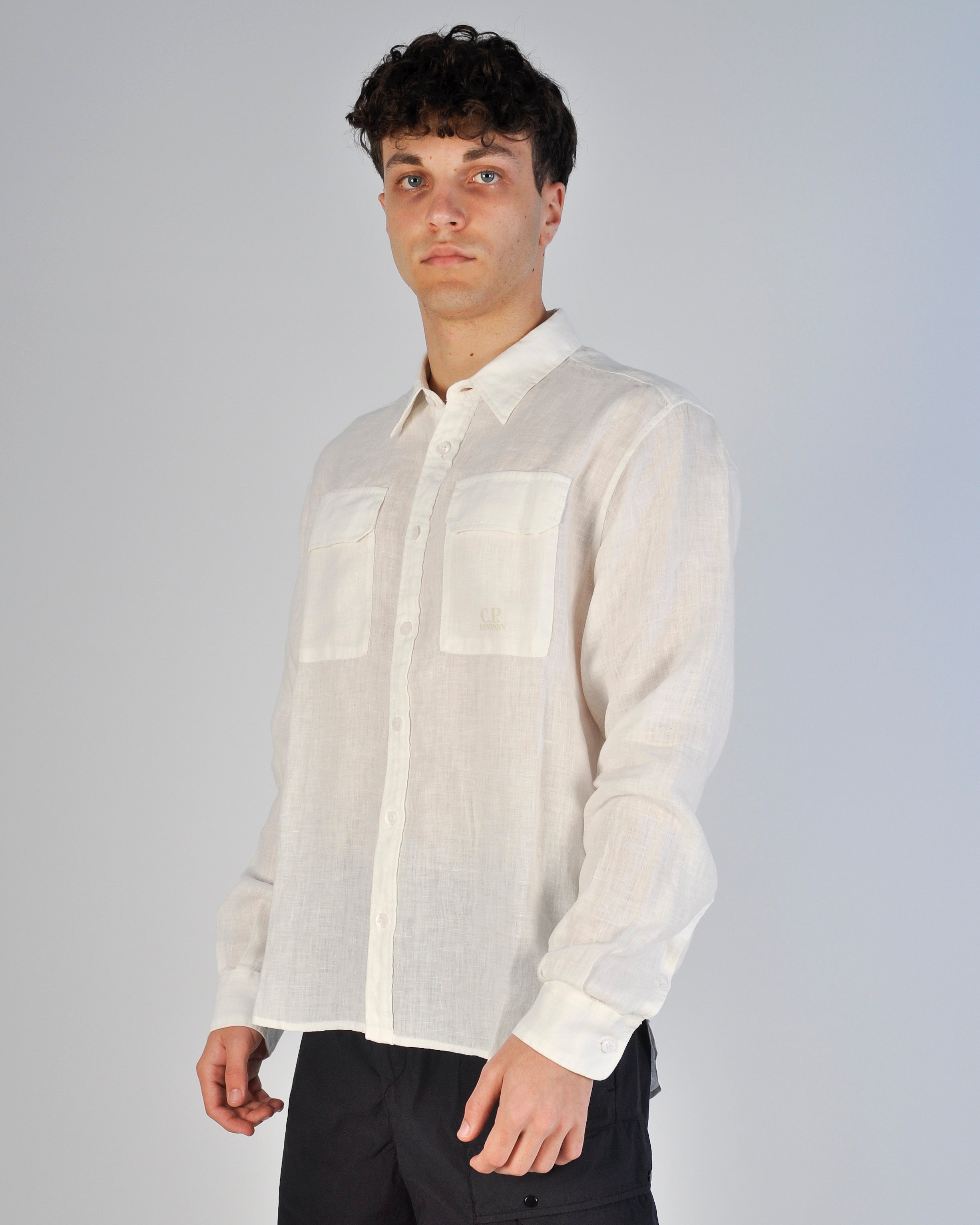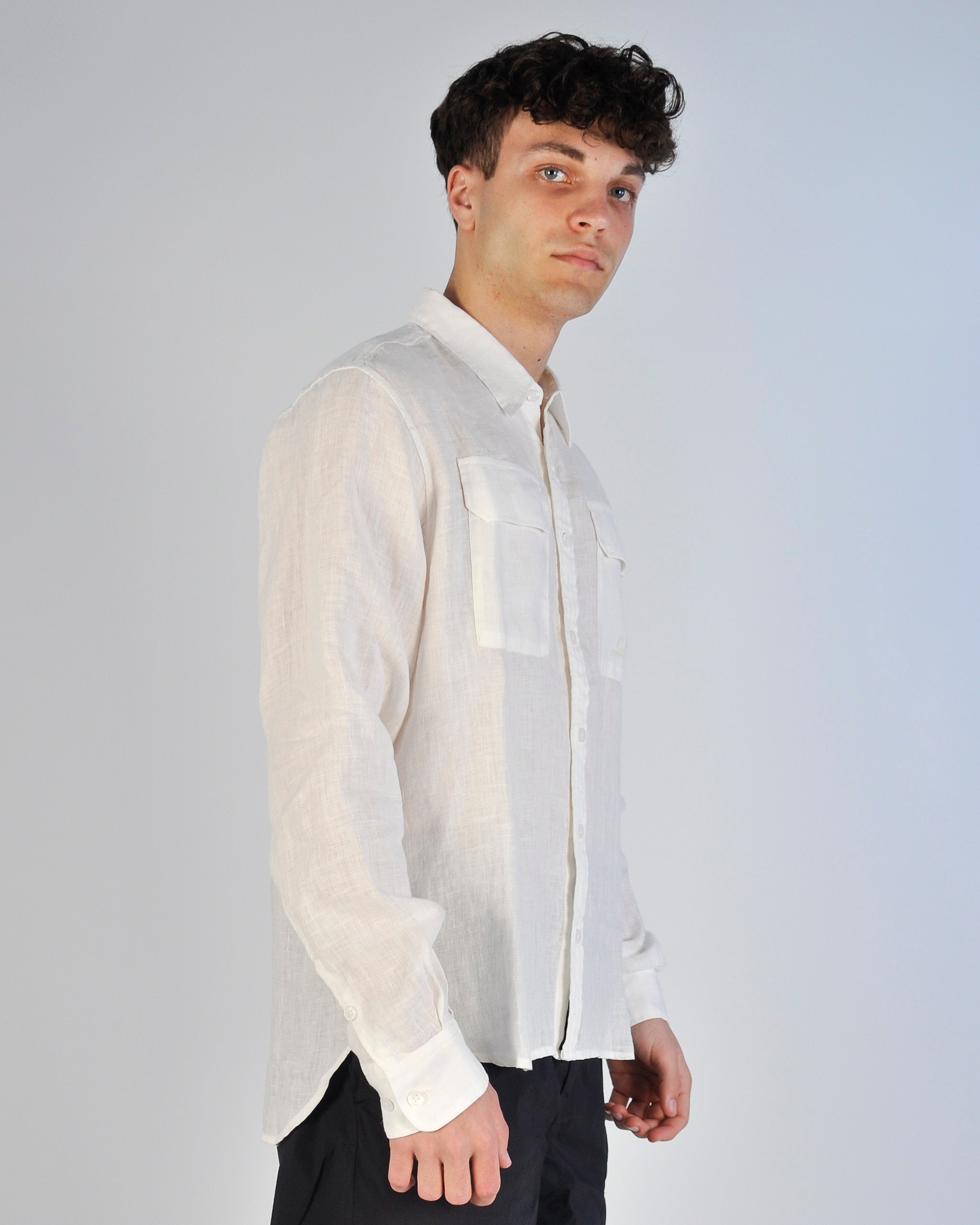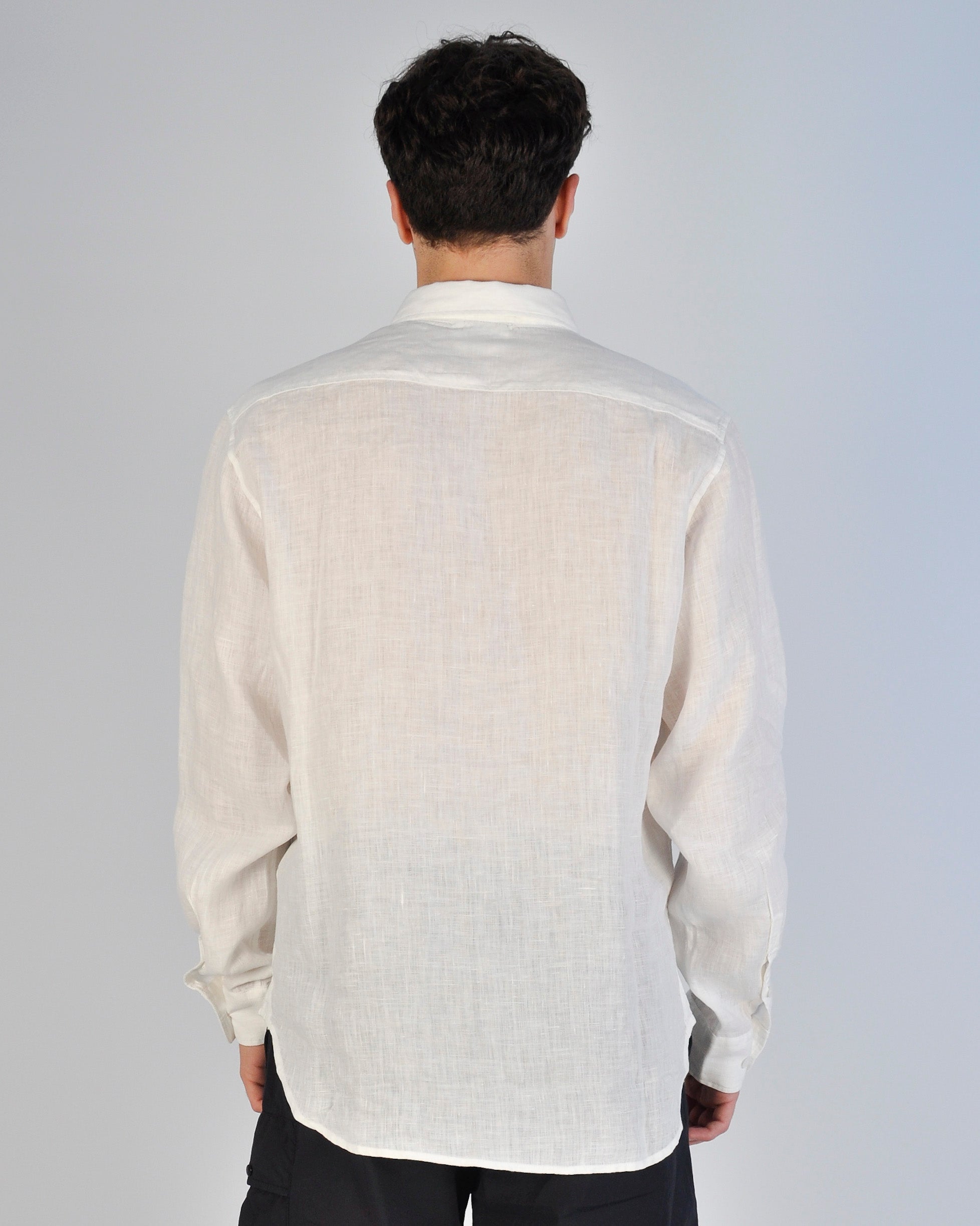 CAMICIA DI LINO A MANICHE LUNGHE CON BOTTONI BIANCA UOMO