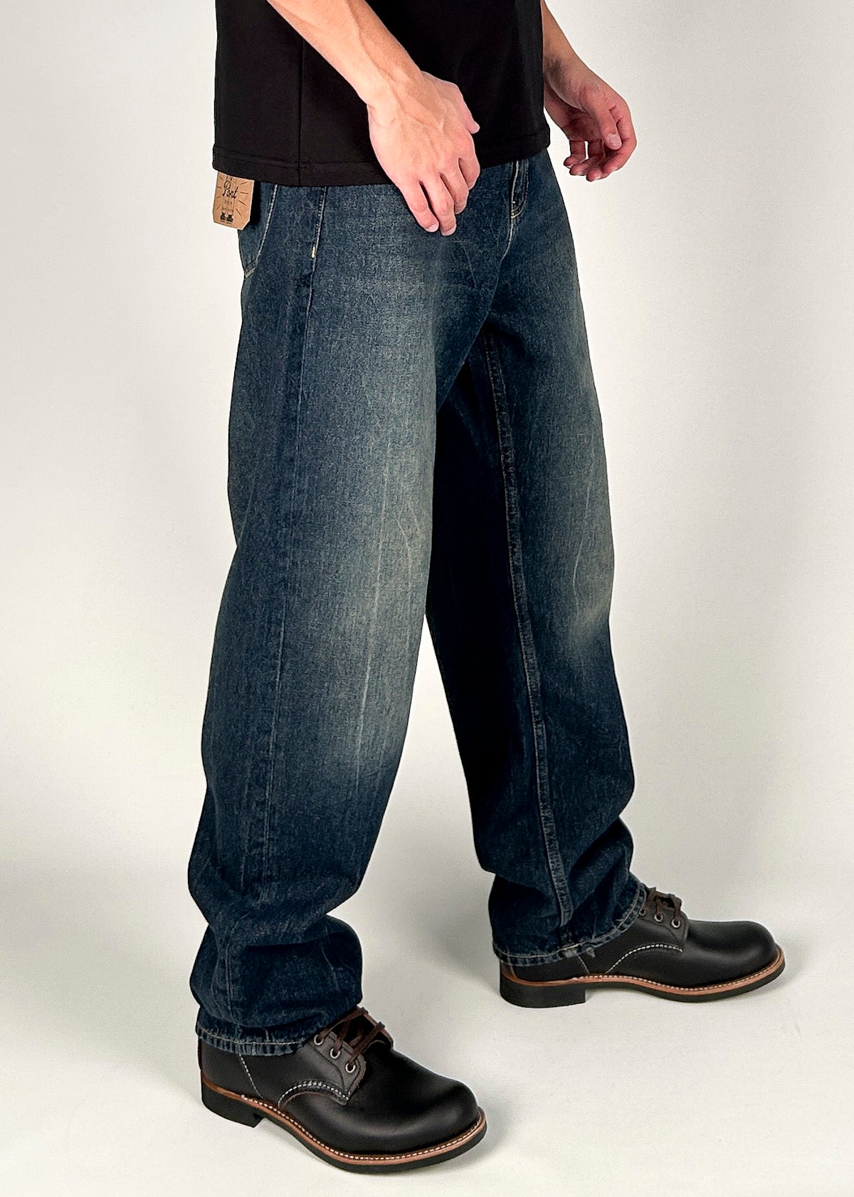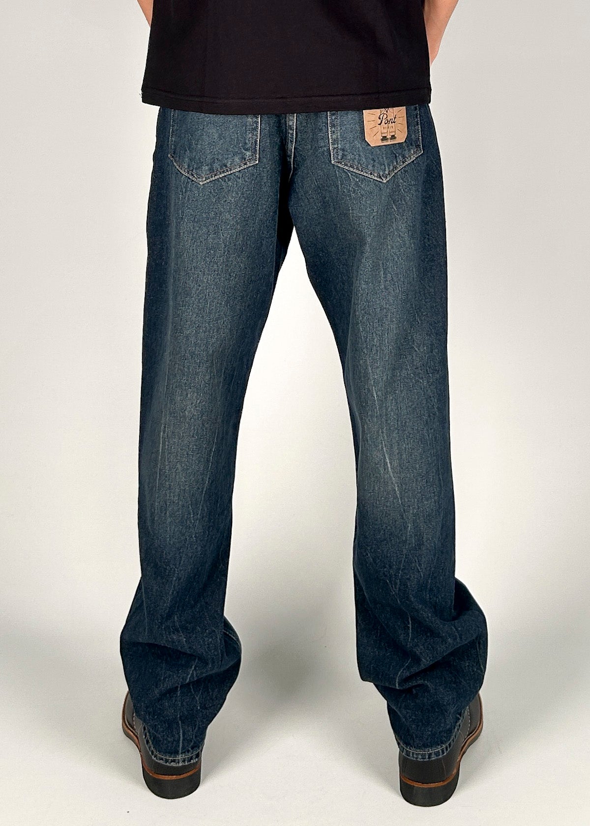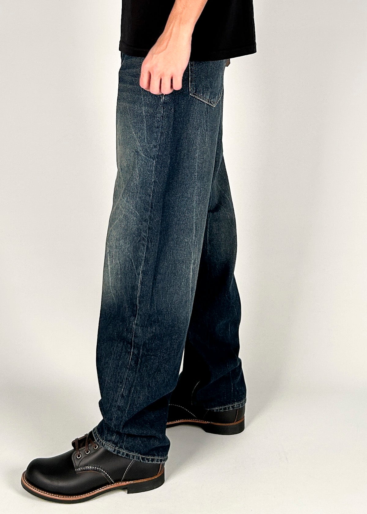 Jeans da uomo con vestibilità ampia. Chiusura frontale con zip e bottone, cinque tasche. Vita bassa, gamba e fondo largo. Realizzato in 100% cotone. Disponibile dalla 30 al 36.