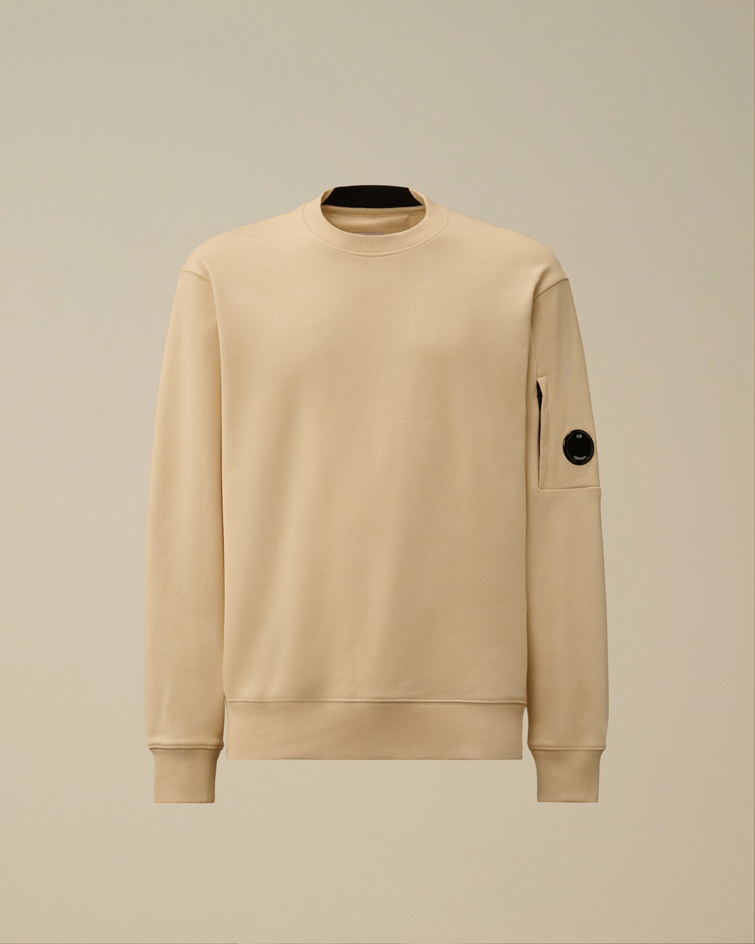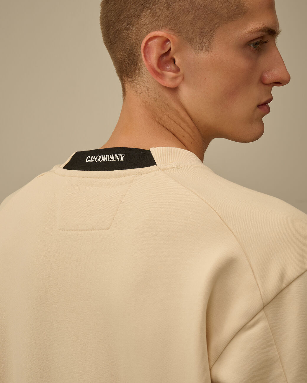 Felpa Girocollo C.P. Company in cotone spazzolato Diagonal Raised Fleece, morbida e confortevole. Girocollo e polsini a costine, taschino con iconica Lente e logo ricamato sul retro del collo. Vestibilità regular. Disponibile dalla S alla XXL.