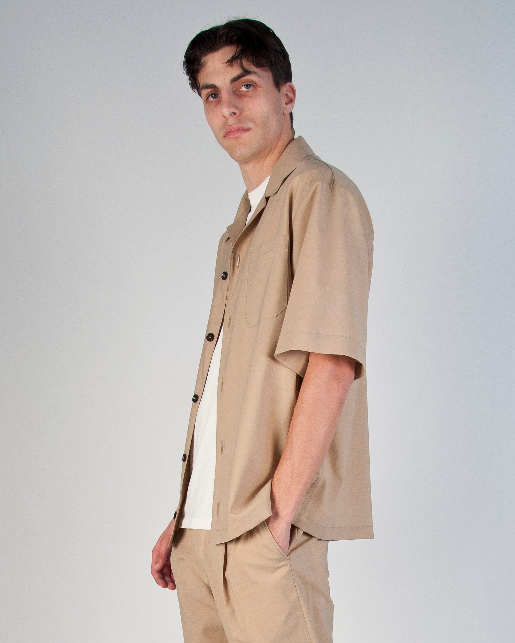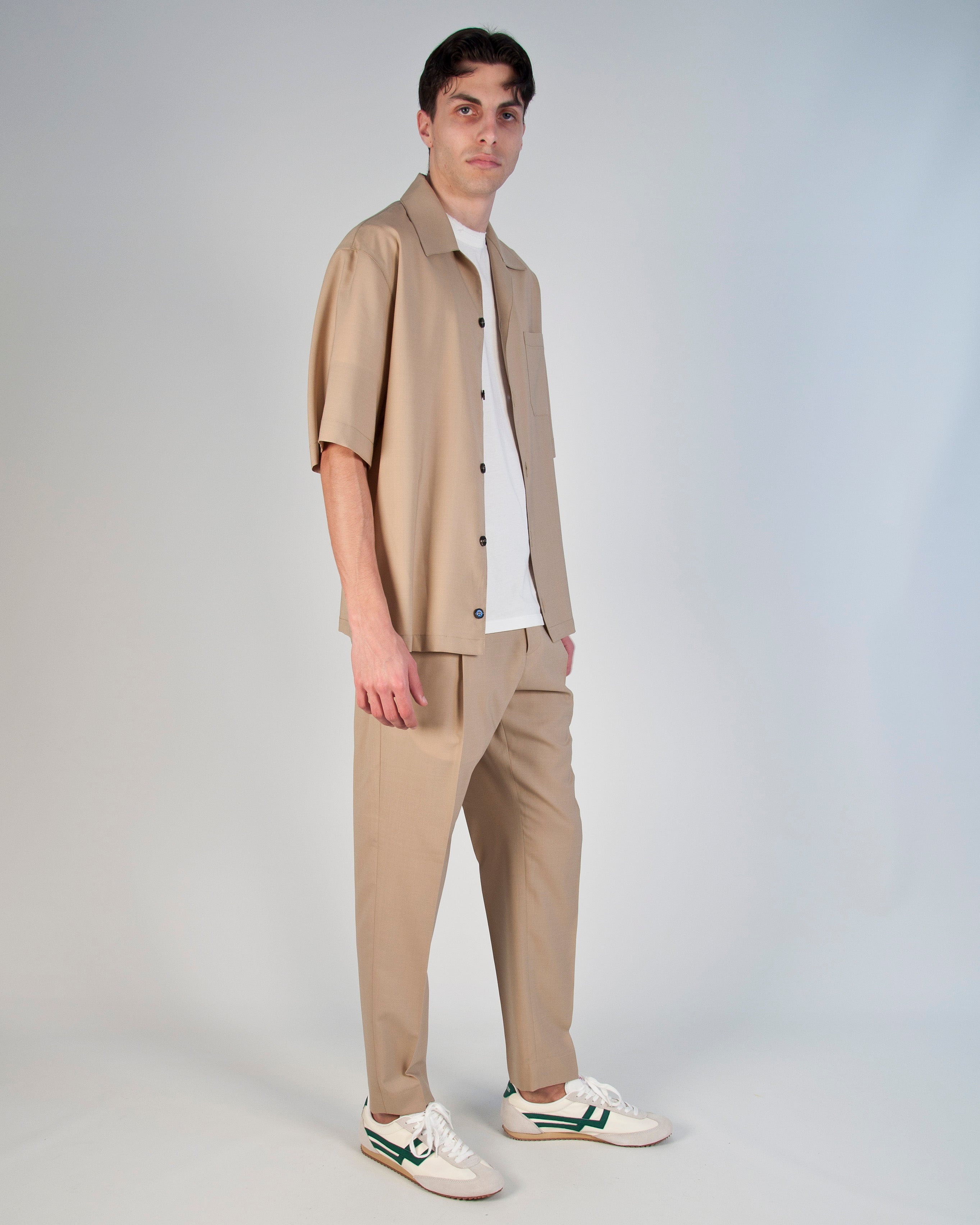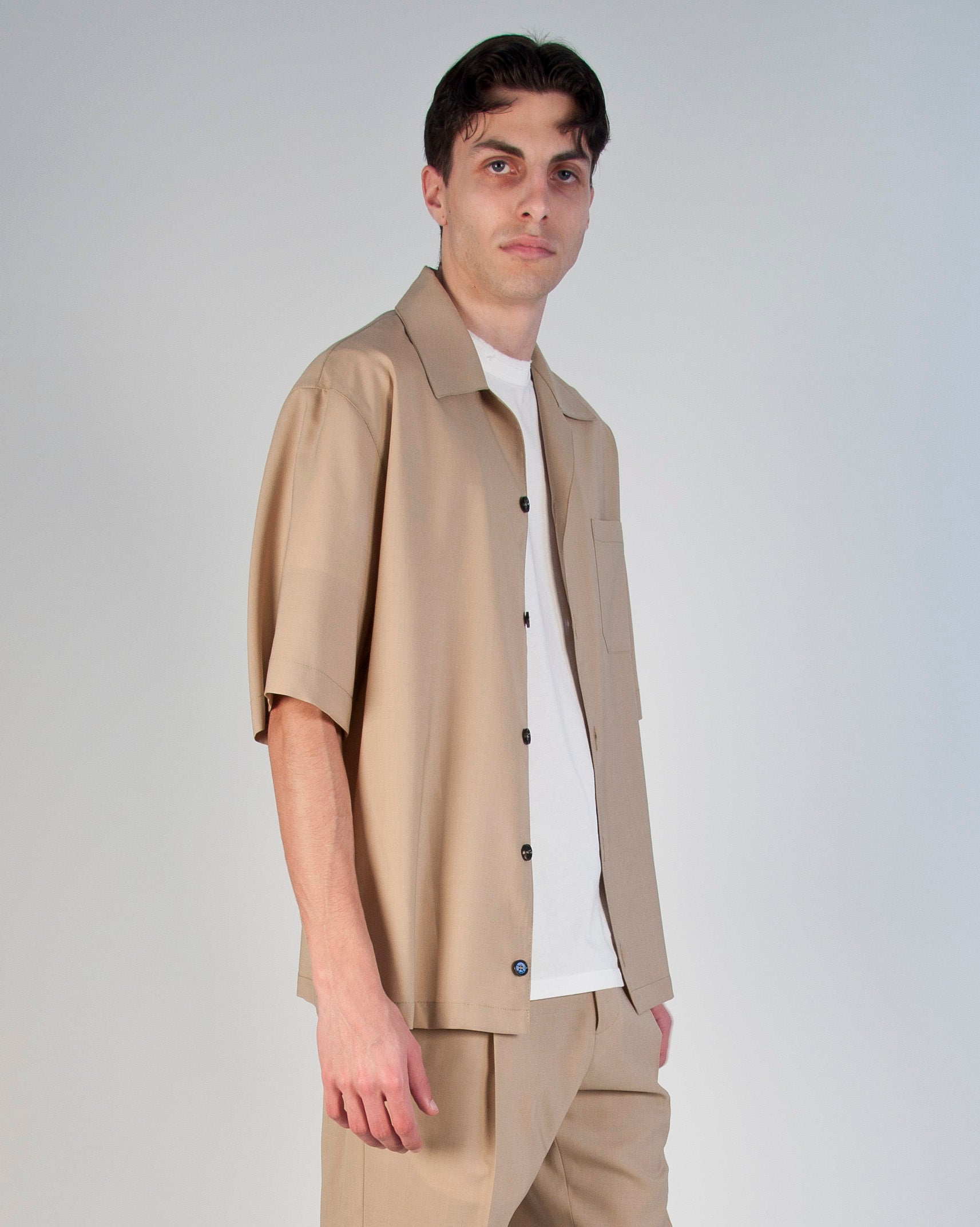 CAMICIA/OVERSHIRTUOMO CON BOTTONI MANICA CORTA TESSUTO TECNICO BEIGE