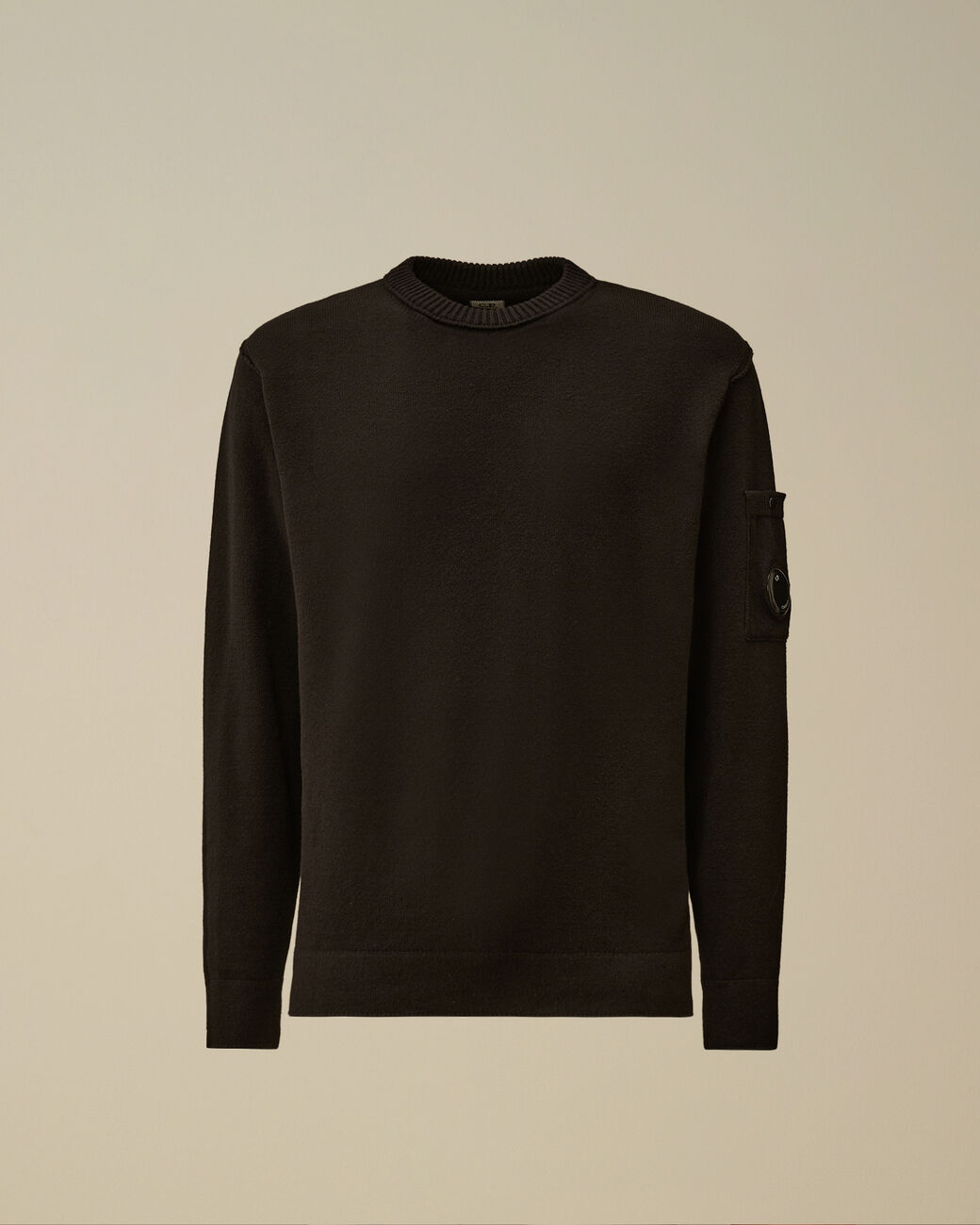 Maglione girocollo in cotone stretch, con taschino e Lente iconica di C.P. Company, cuciture a contrasto sul giromanica. Finezza 7 e vestibilità regular. Disponibile dalla S alla XL.