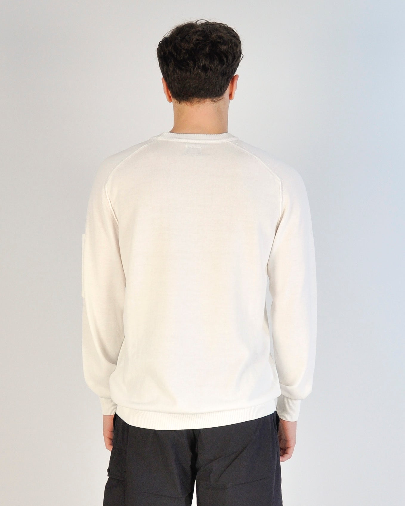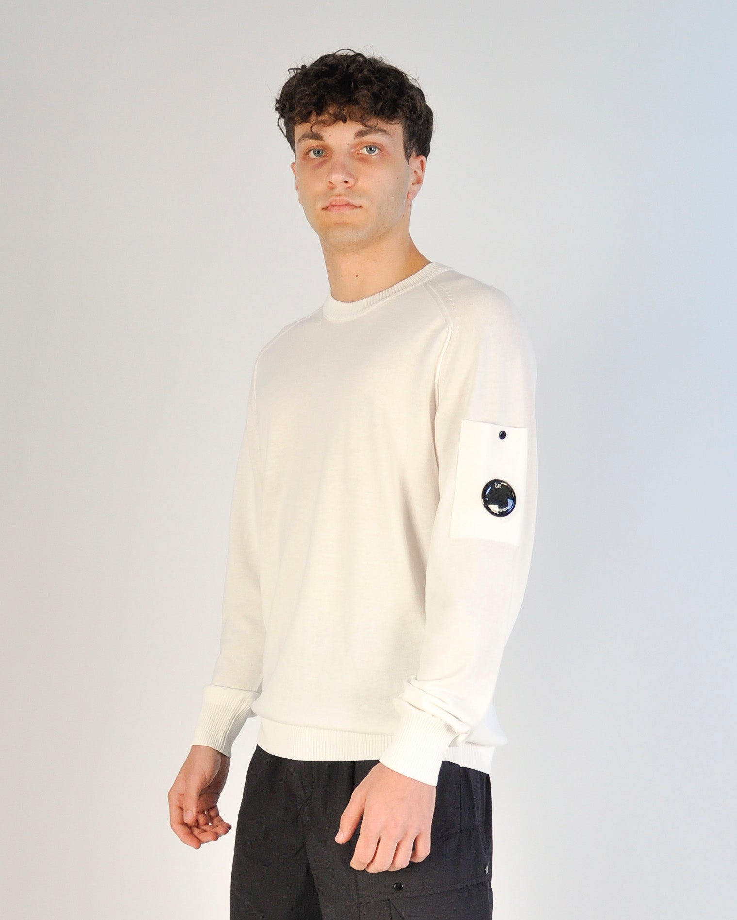Maglione C.P. Company realizzato in cotone crepe, un tessuto leggero e traspirante caratterizzato da una texture naturalmente irregolare. Il modello presenta girocollo a costine e cuciture a contrasto sulle giromaniche, dettagli che valorizzano il design contemporaneo del capo. Completano la maglia il taschino sulla manica con l’iconica Lente C.P. Company, polsini e orlo a costine per una vestibilità confortevole e strutturata. Il capo è tinto in capo con trattamento “Old dyed”, che dona sfumature di colore uniche ed effetto leggermente vissuto. Realizzato con finezza 14 e Made in Italy, presenta regular fit, perfetto per un look casual raffinato e moderno. Il modello è alto 1.75 m ed indossa la taglia M. Disponibile dalla S alla XL.
