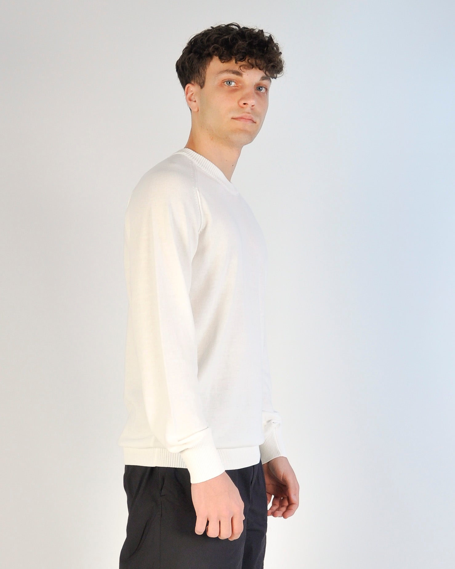 MAGLIONE IN COTONE BIANCO CREPE CON LENTE REGULAR FIT UOMO