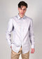 Camicia in cotone elasticizzato con collo a punta, cannoncino con bottoni, maniche lunghe con polsini, carré posteriore con pieghe e fondo stondato. Vestibilità regolare, disponibile dal 38 al 44.