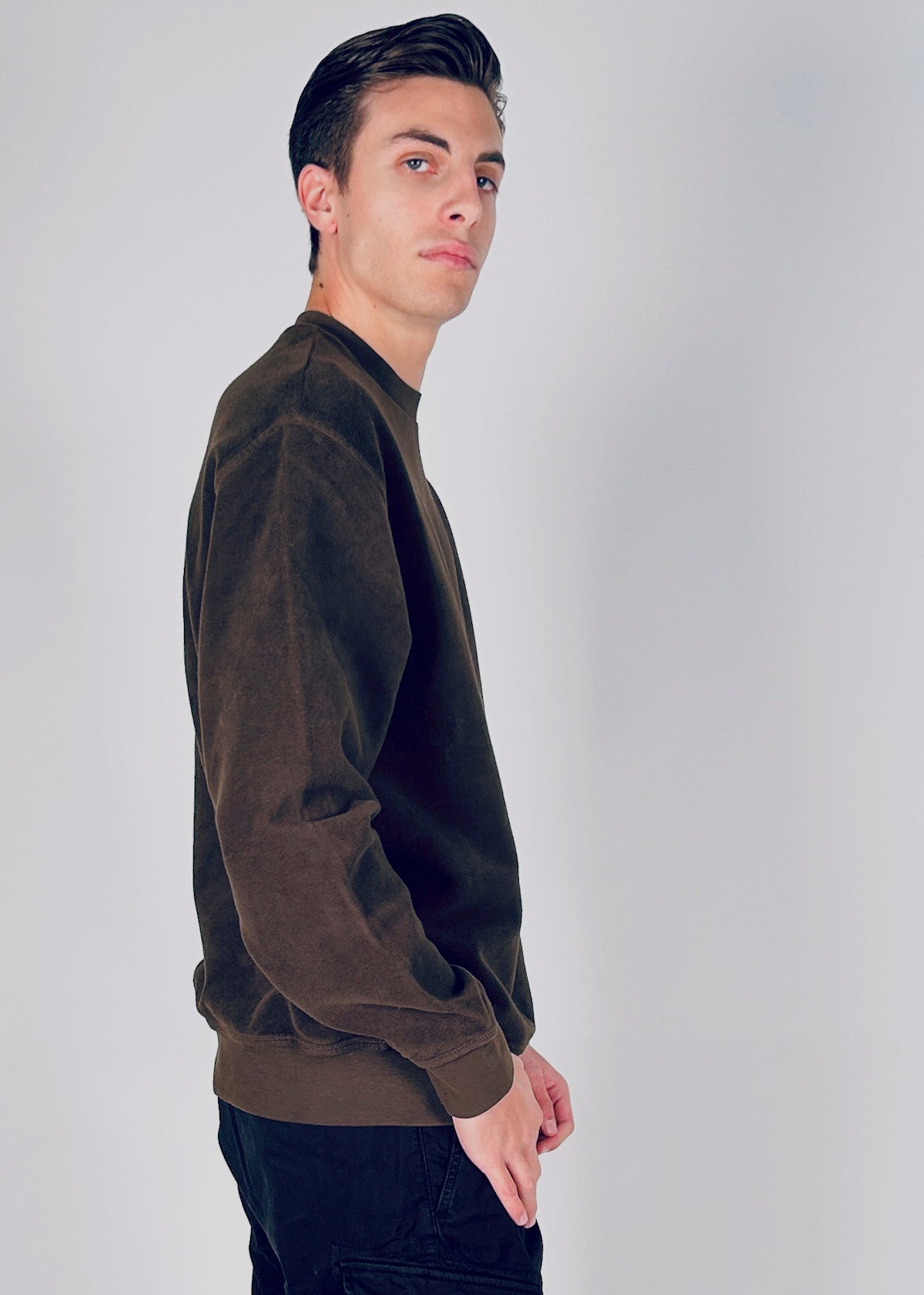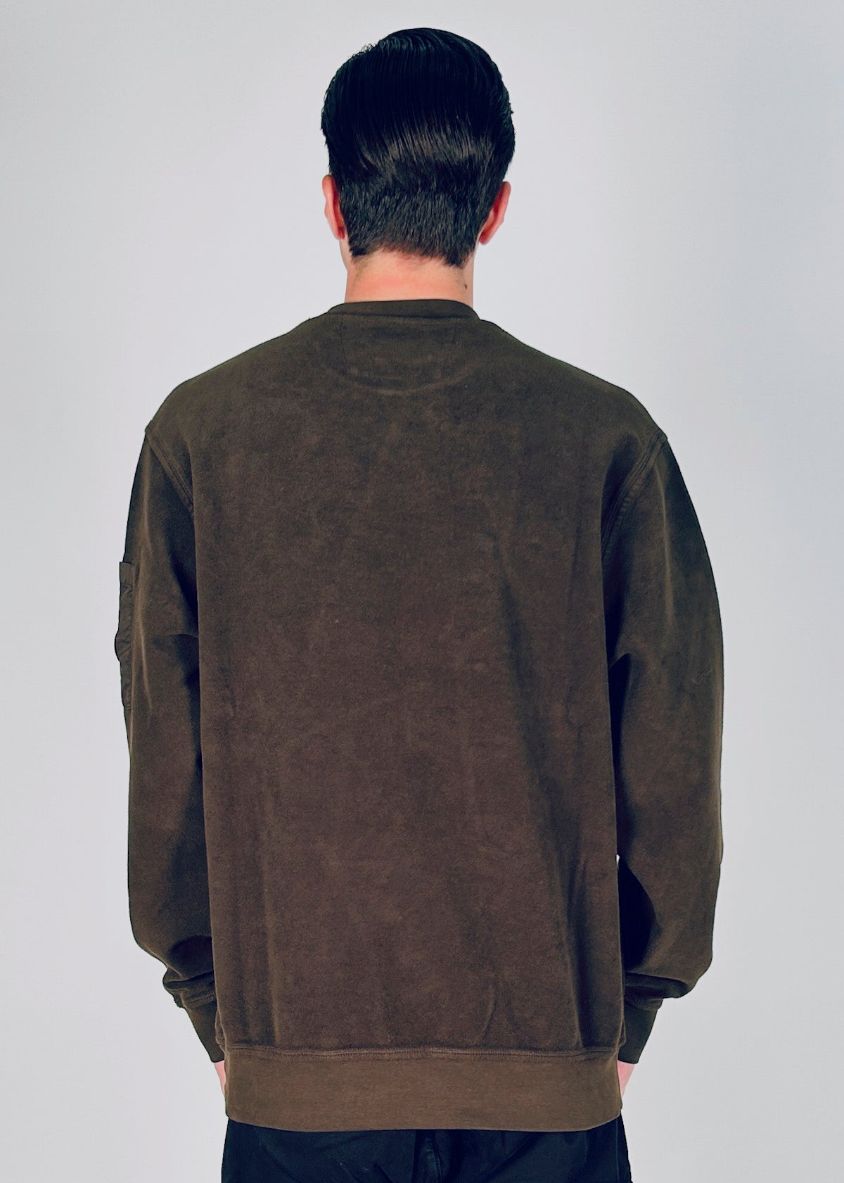 FELPA UOMO GIROCOLLO IN FLEECE DIAGONALE GARZATO E SMERIGLIATO VERDE