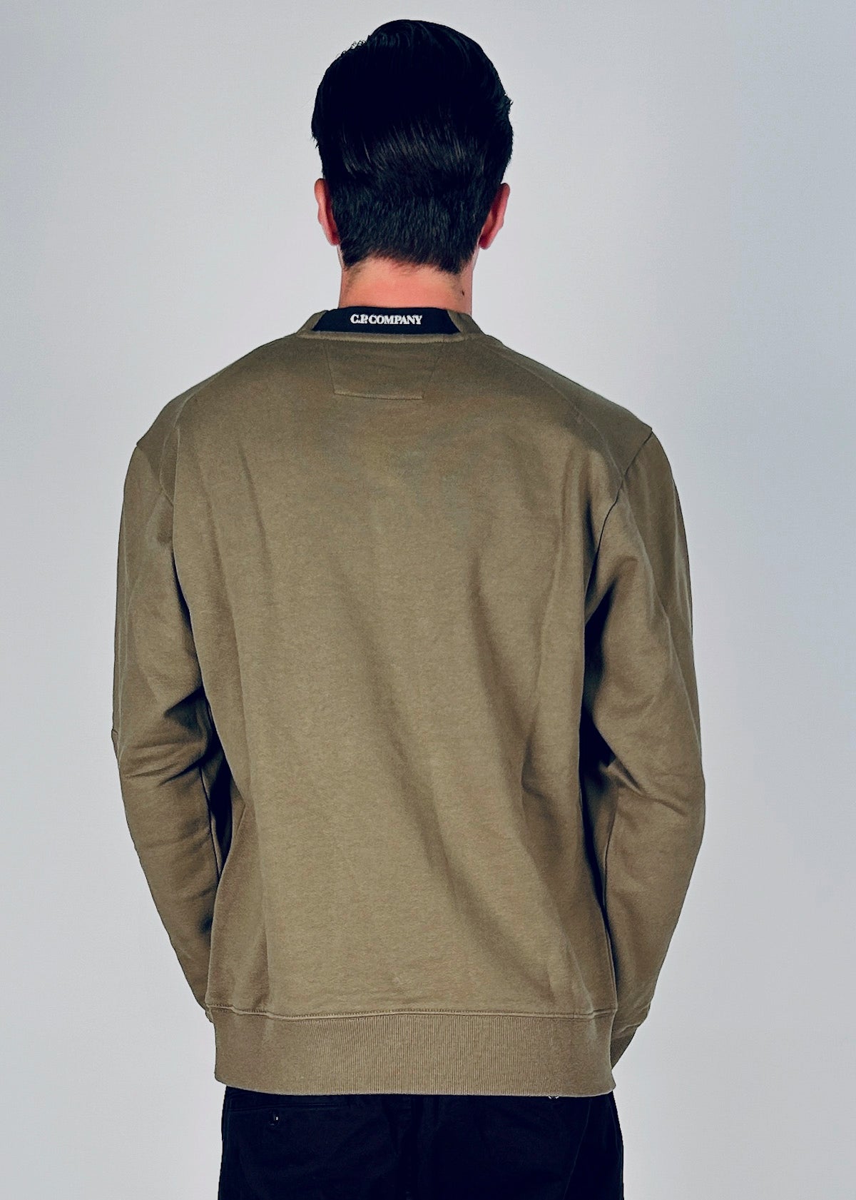 Felpa Girocollo C.P. Company in cotone spazzolato Diagonal Raised Fleece, morbida e confortevole. Girocollo e polsini a costine, taschino con iconica Lente e logo ricamato sul retro del collo. Vestibilità regular. Disponibile dalla S alla XXL. Il modello è alto 1.86m ed indossa la taglia M. Made in China.