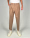 Pantalone in cotone con penches tasche america vestibilità slim e corta. Chiusura in vita con cerniera e doppio bottone, retro con elastico. Disponibile dalla 30 alla 36. Il modello è alto 1.86m ed indossa la taglia 32. Made in Italy.