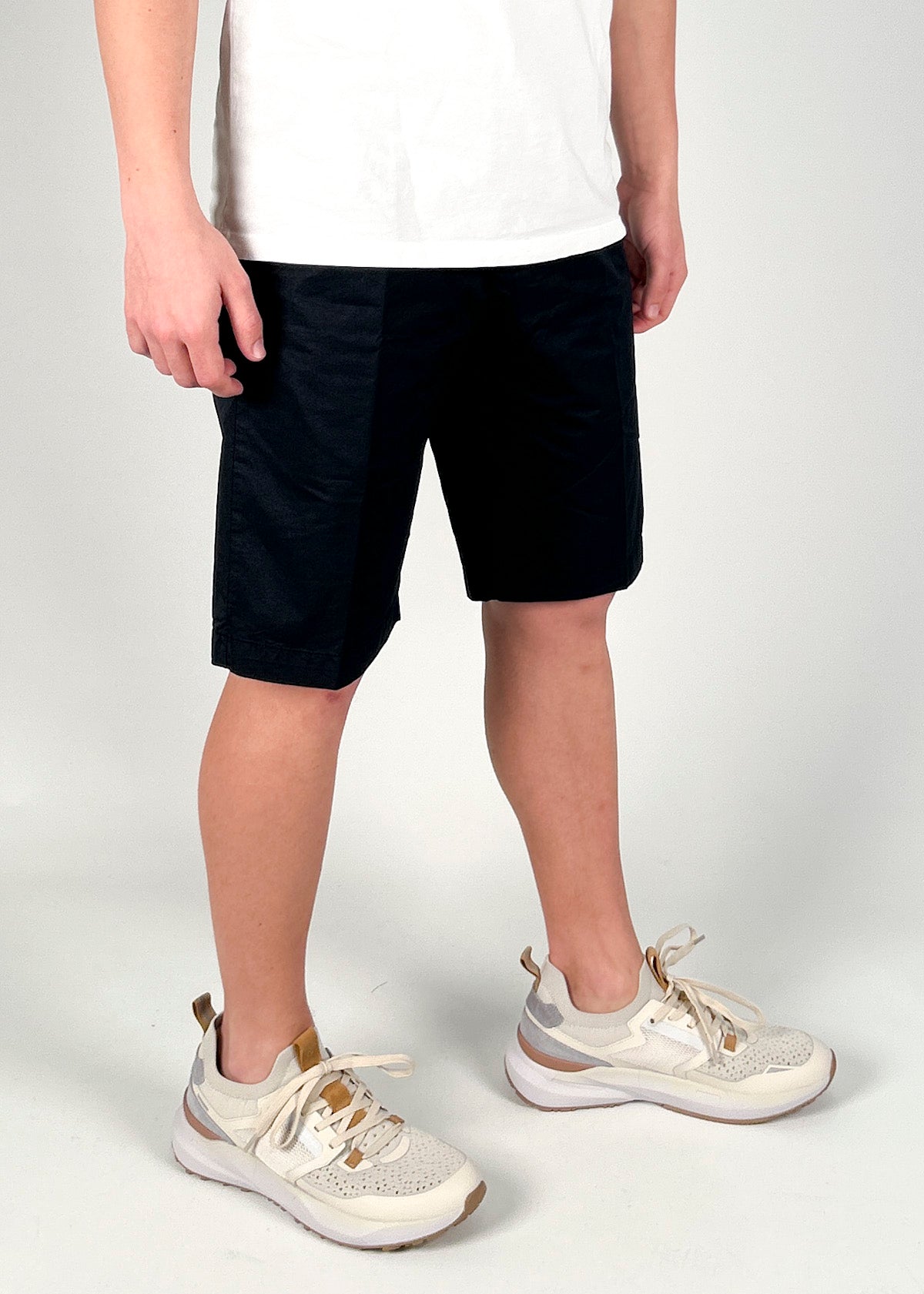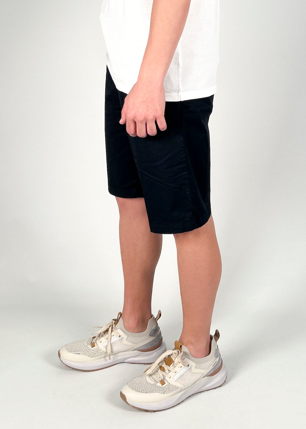 Il bermuda White sand modello contemporaneo dal DNA utility con dettagli sartoriali, firmato dal brand romagnolo. Caratterizzato da vita elasticizzata con coulisse iconica, offre comfort e vestibilità versatile. Realizzato in cotone leggero o misto cotone/lino stretch, garantisce traspirabilità e libertà di movimento. Completo di tasche a filetto laterali e tasche posteriori con patta, è un capo Made in Italy ideale per uno stile casual ricercato. Il modello è alto 1.75 ed indossa la taglia 46. Disponibile dal 44 al 52.