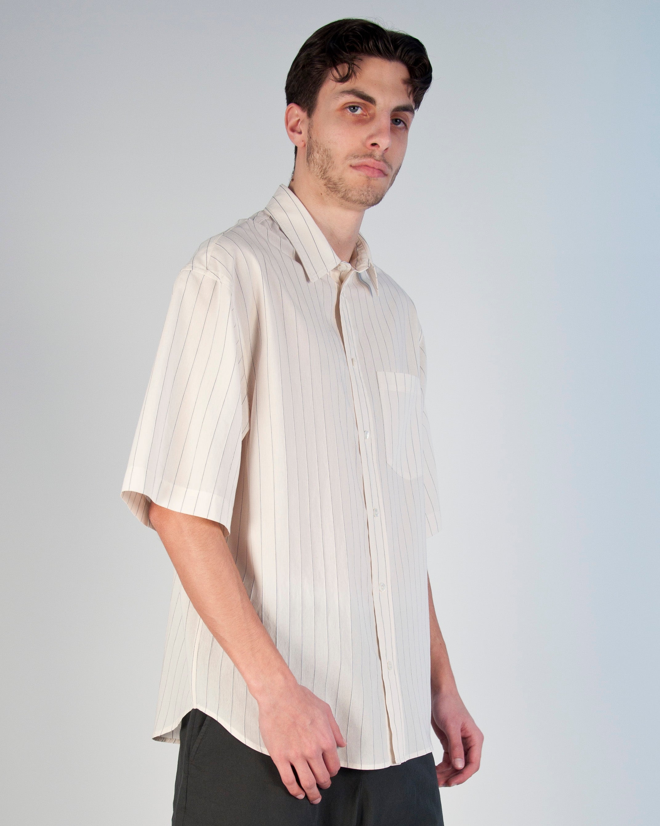 CAMICIAUOMO MANICA CORTA RIGATA VESTIBILITA' OVER BURRO