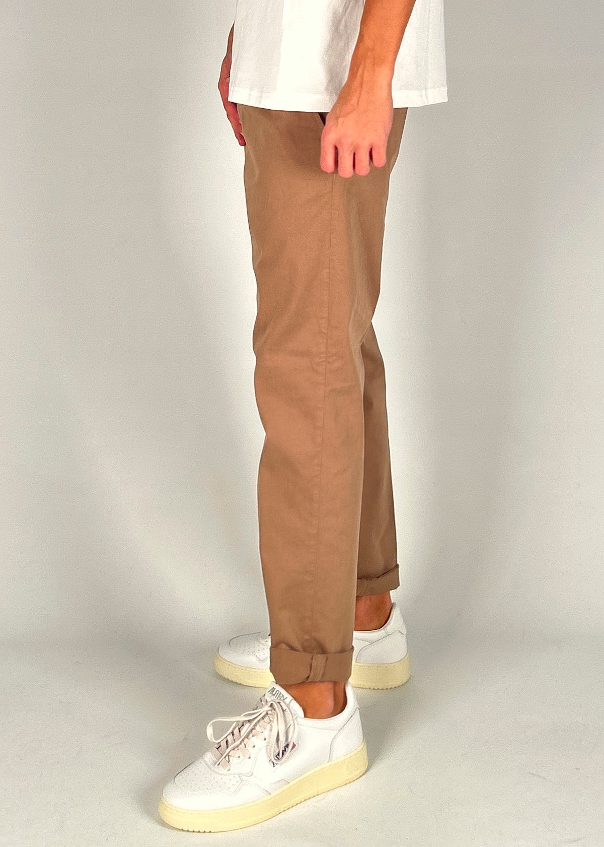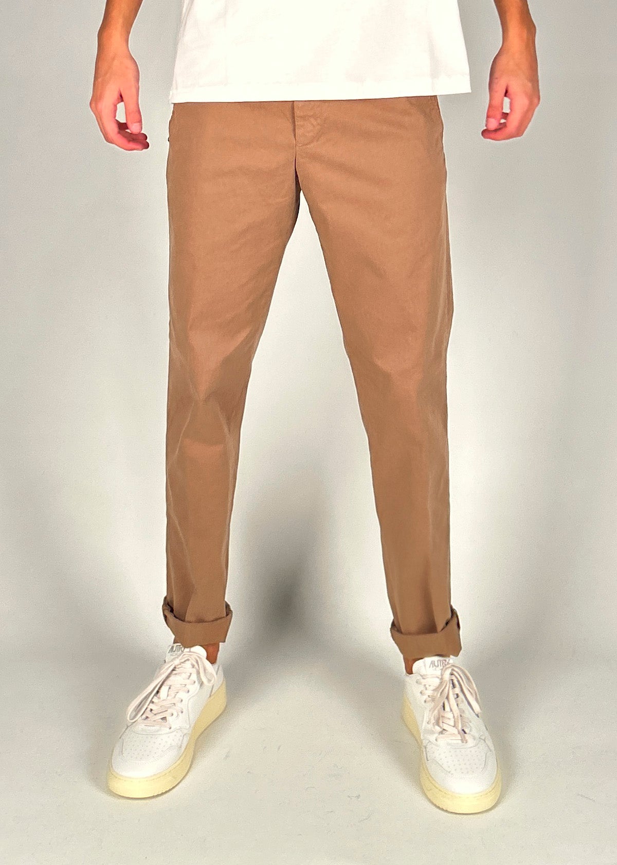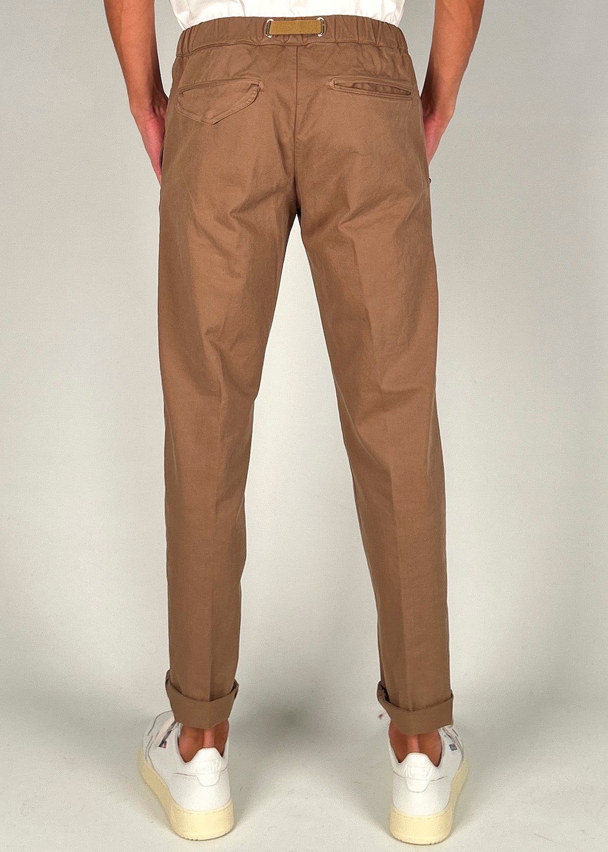 Pantalone in gabardina,tinta unita.Vita elasticizzata con coulisse regolabile e fibbia. Chiusura con zip.Tasche oblique anteriori e tasche posteriori, una a filetto e una con patta.Vestibilità comfort. Disponibile dalla 44 alla 54. Il modello è alto 1.86m ed indossa la taglia 46. Made in Italy.