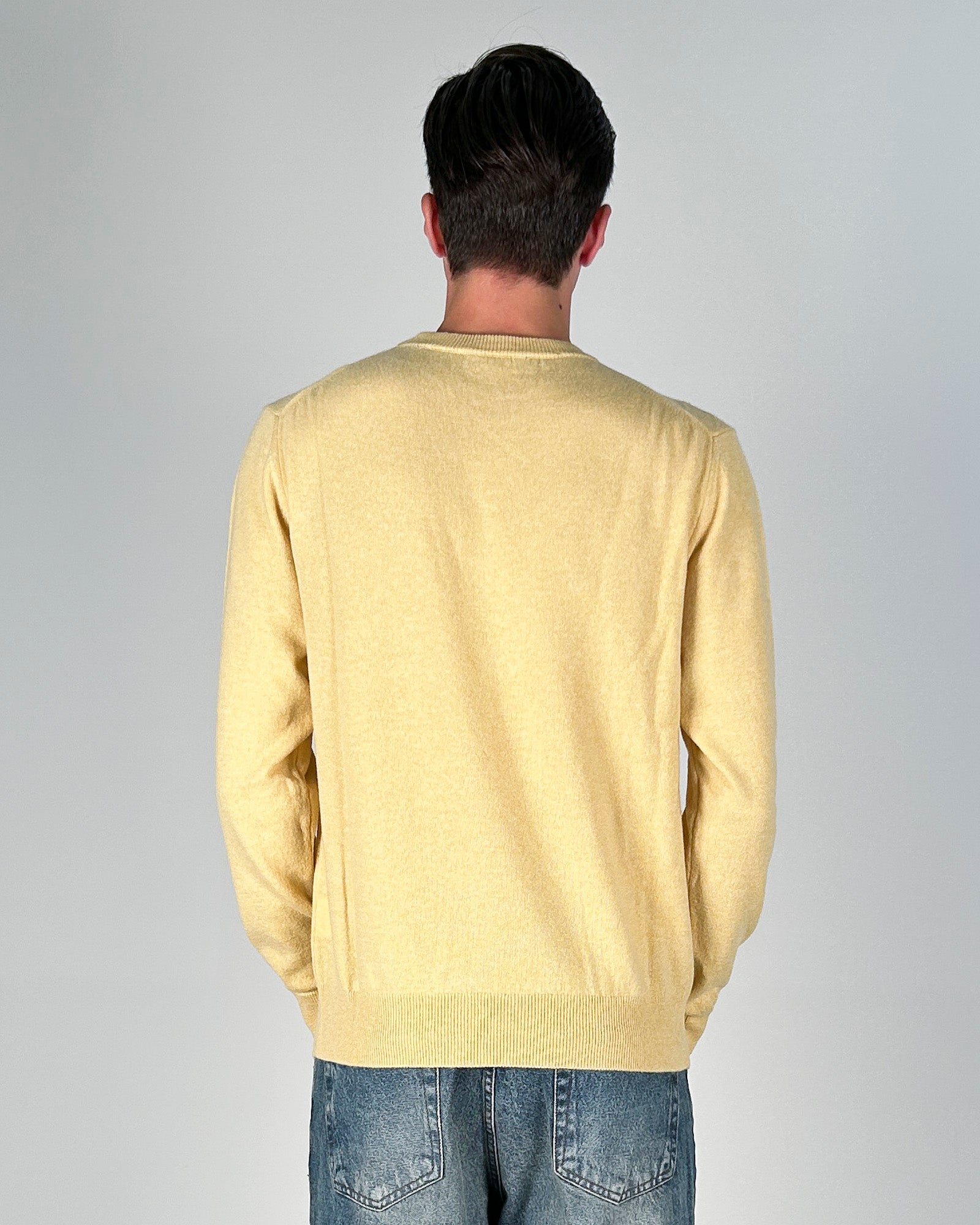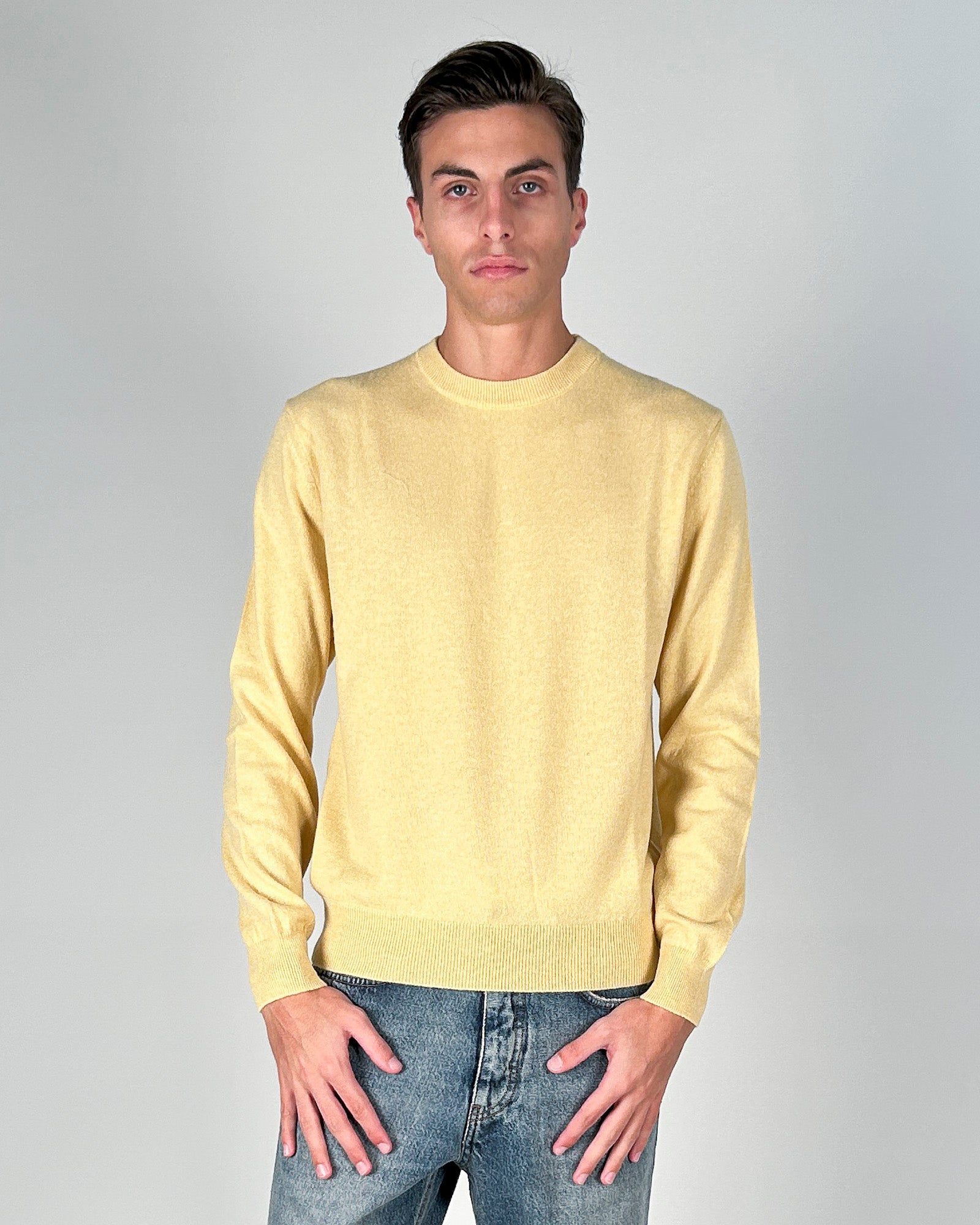 PULLOVER UOMO GIROCOLLO IN CASHMERE 'BOTANICA' GIALLO