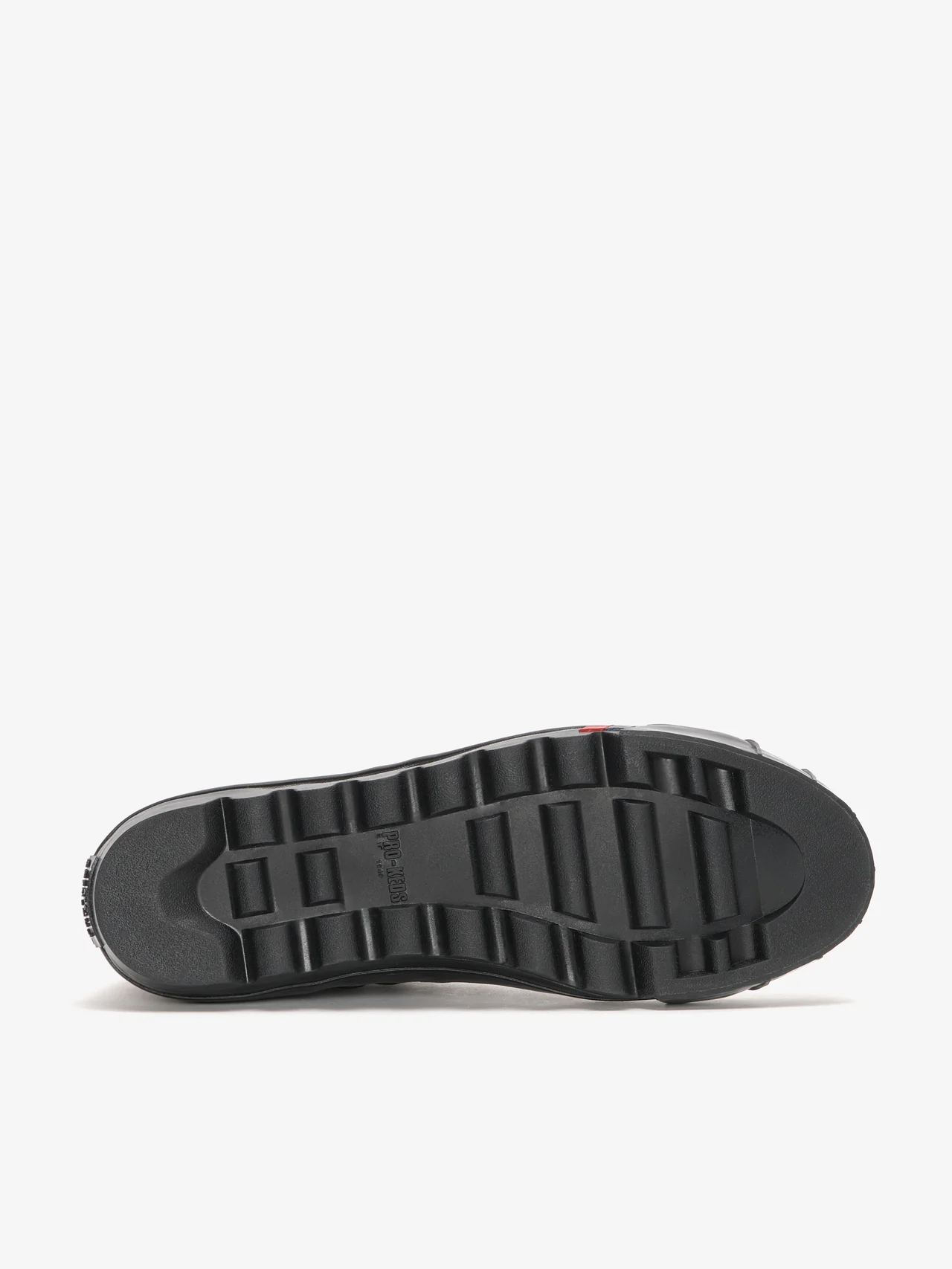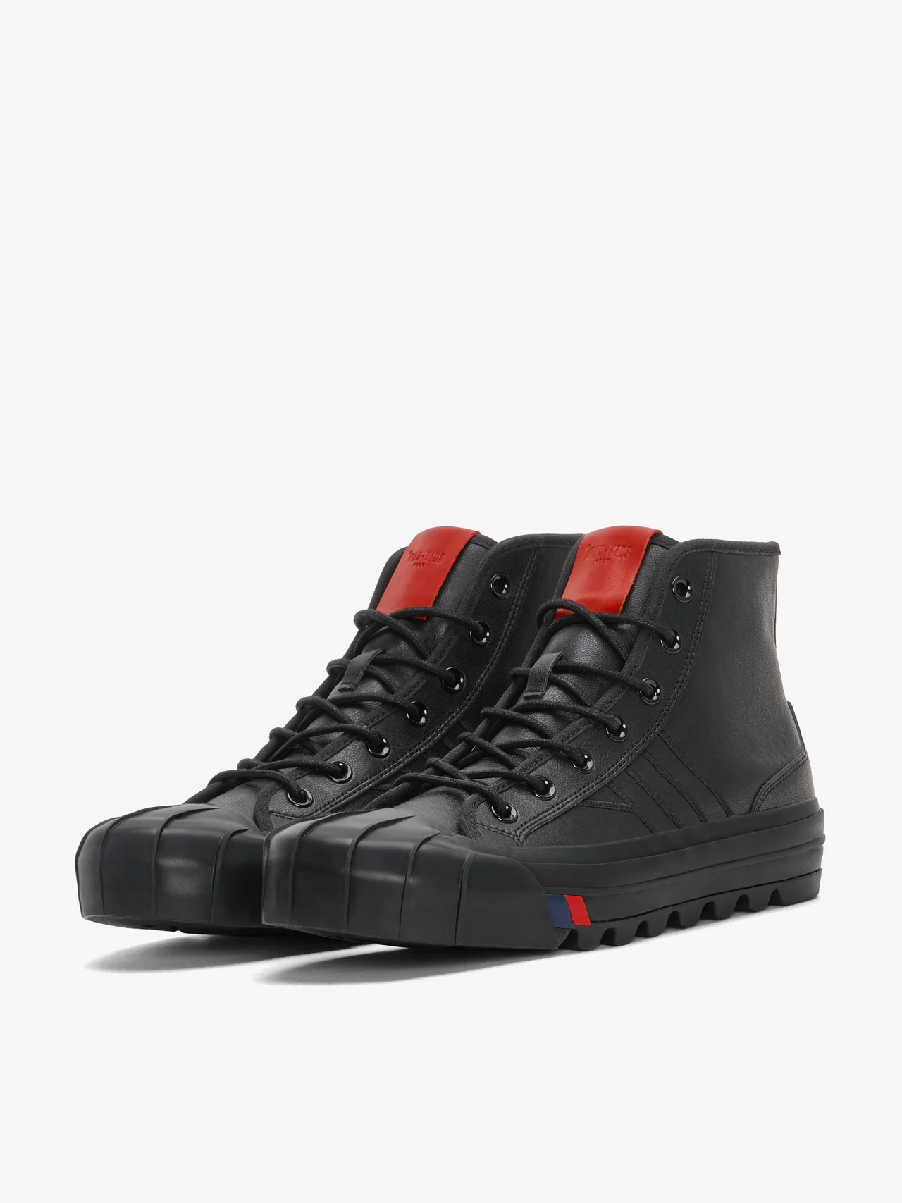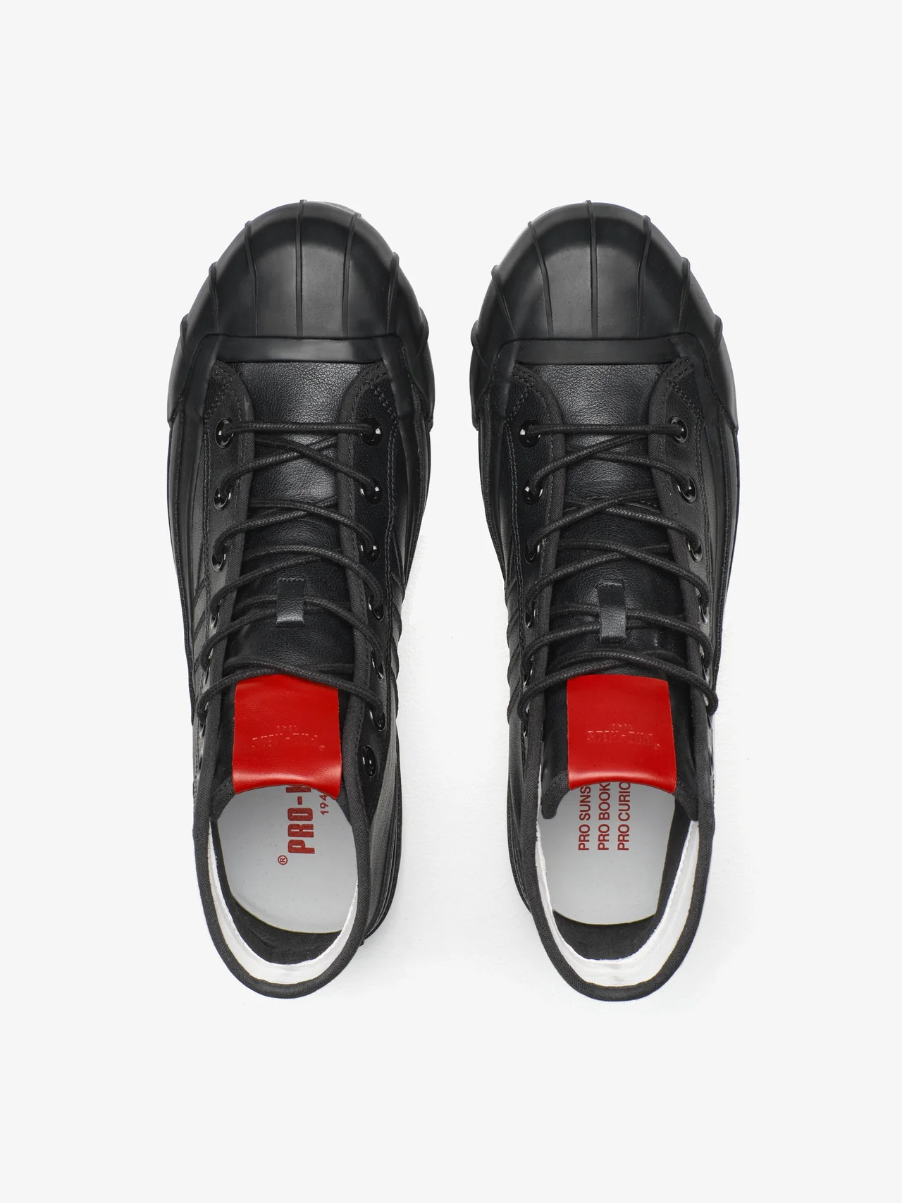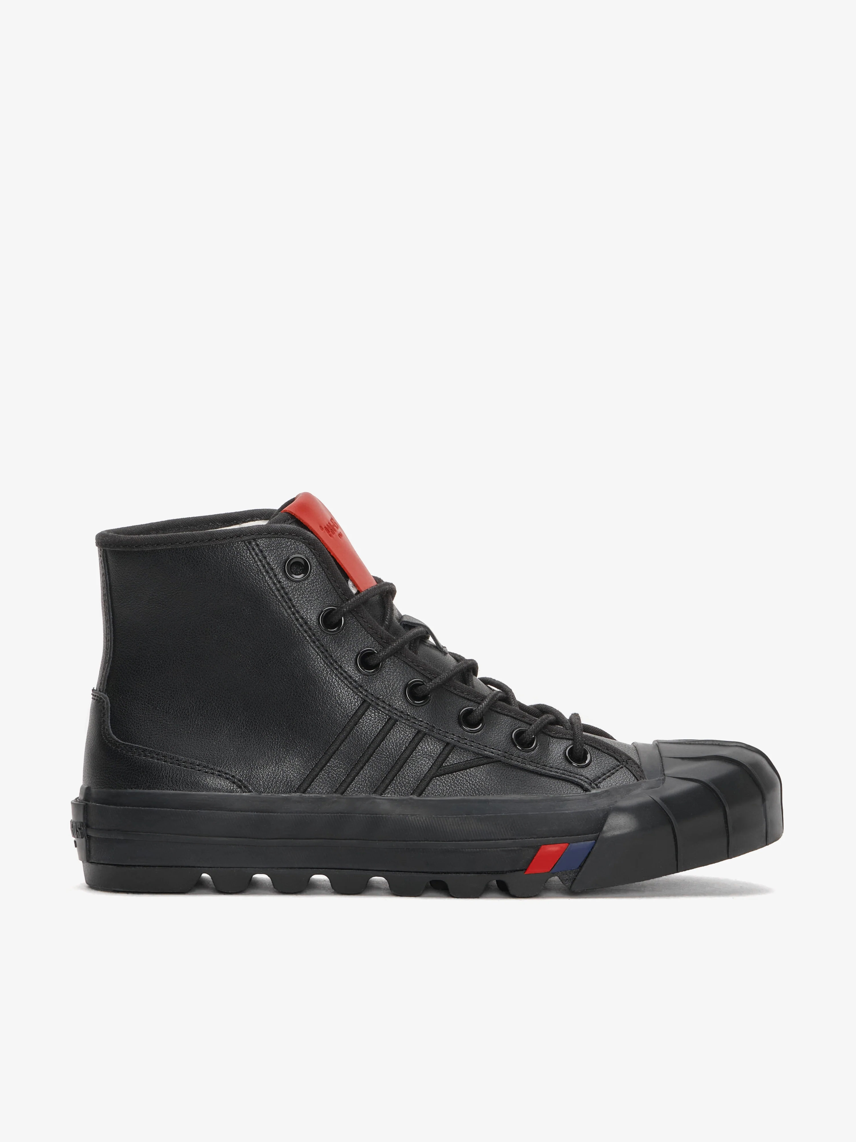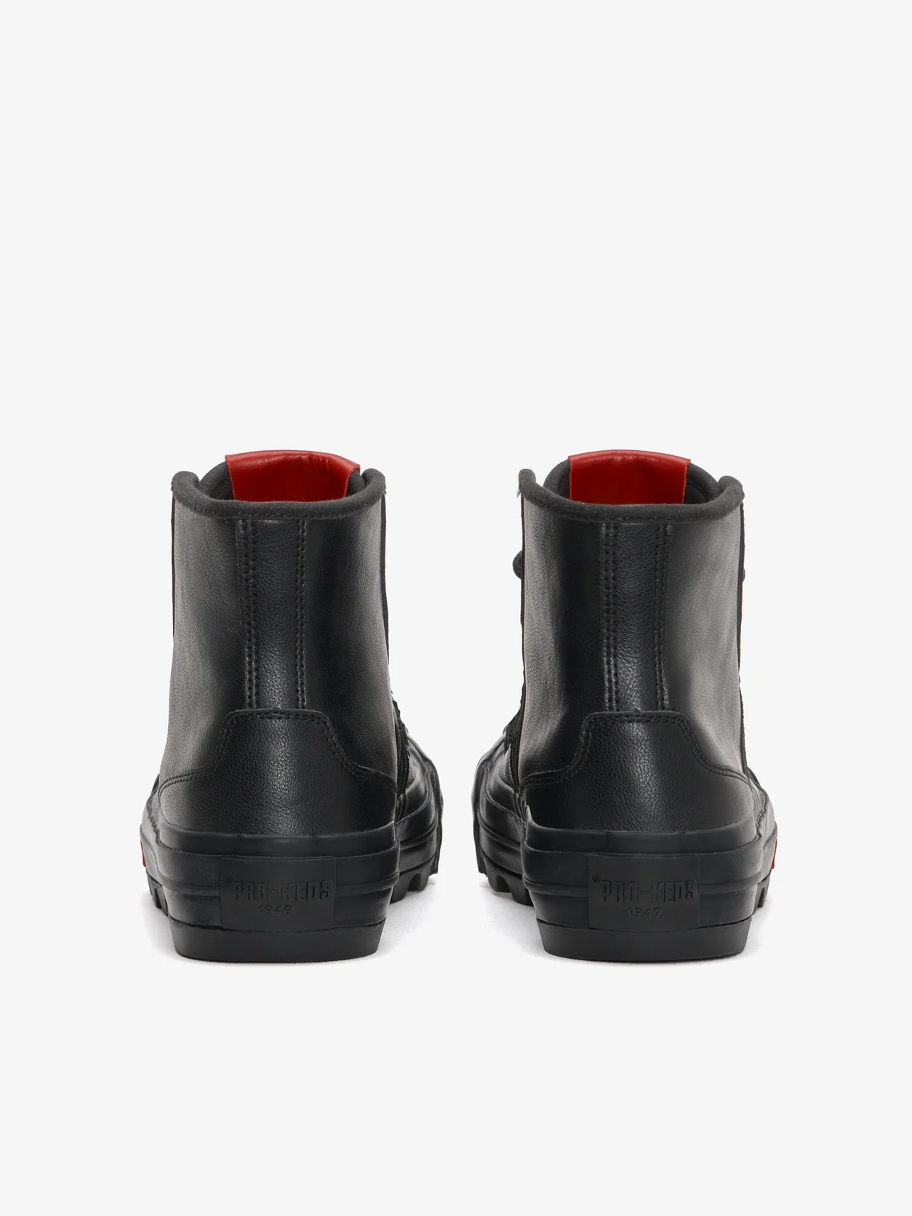 Modello d’archivio Pro-Keds 1949 in pelle tramata obliqua, alta con lacci cerati in cotone, fodera e soletta in morbida pelle, suola in gomma con 5 foxing e battistrada carrarmato, vulcanizzazione orientale, dust bag logata e doppio laccio. Disponibile dal 40 al 45.